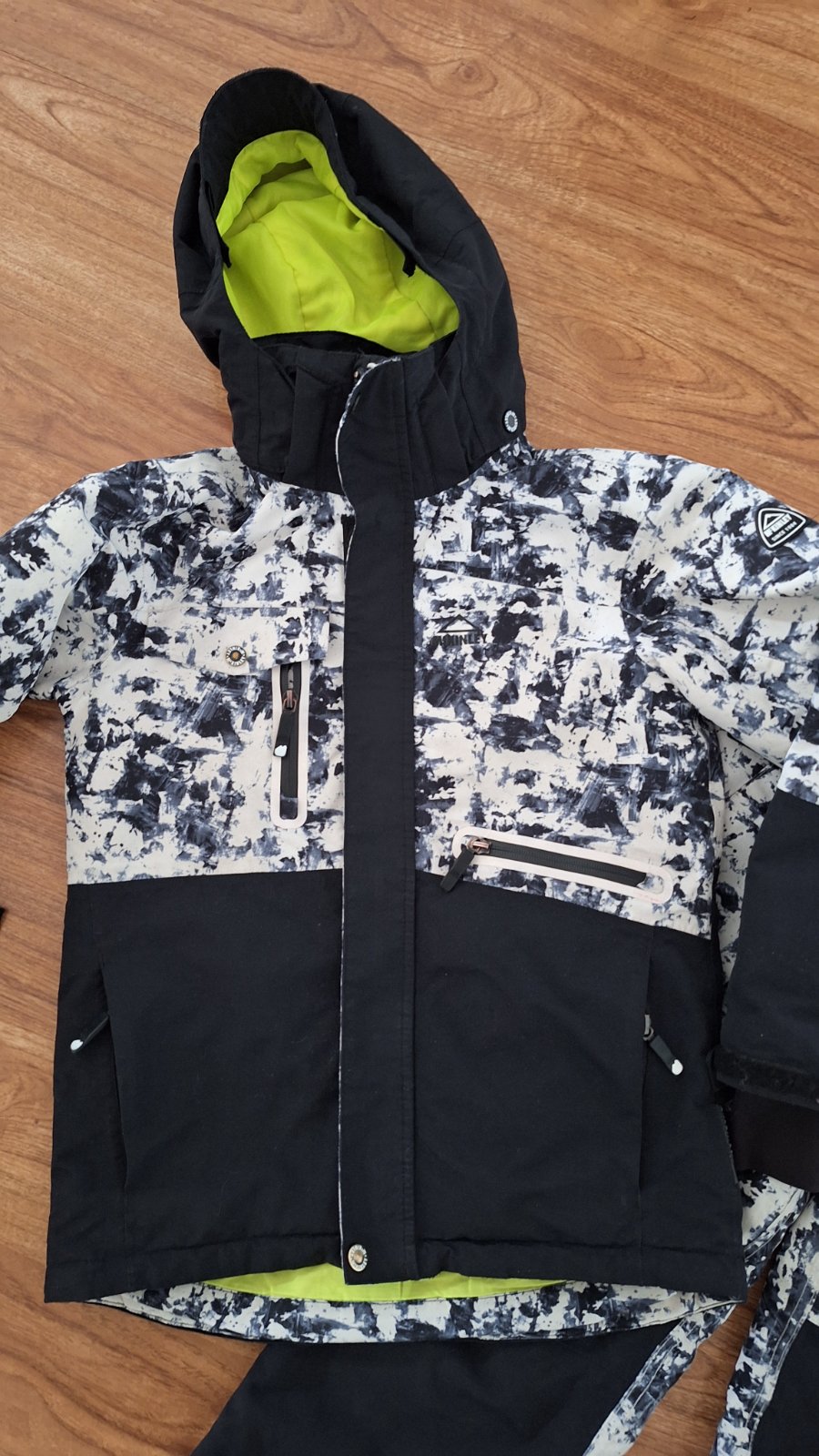 Bunda > sirka 45cm, dlzka od stredu pleca vpredu vzadu 57/60,5cm, rukav pazusie/plece/kapucna 41/50 /61cm. Merane bez elastickeho patentu.