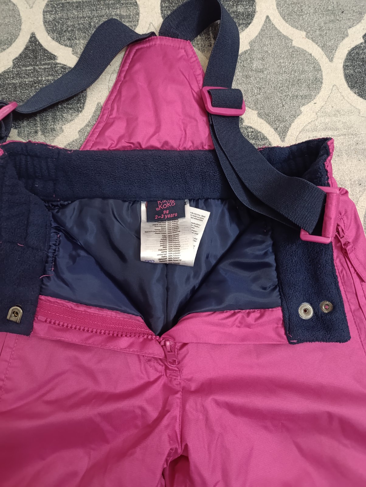 Oteplovacky top stav, bez osuchanych kolien a zadku. Jediná chyba-vytrhol sa patent z látky na podsivke, vidno na foto, inak je to vo vnútri, takže to nevidieť a nijako to nevadí.