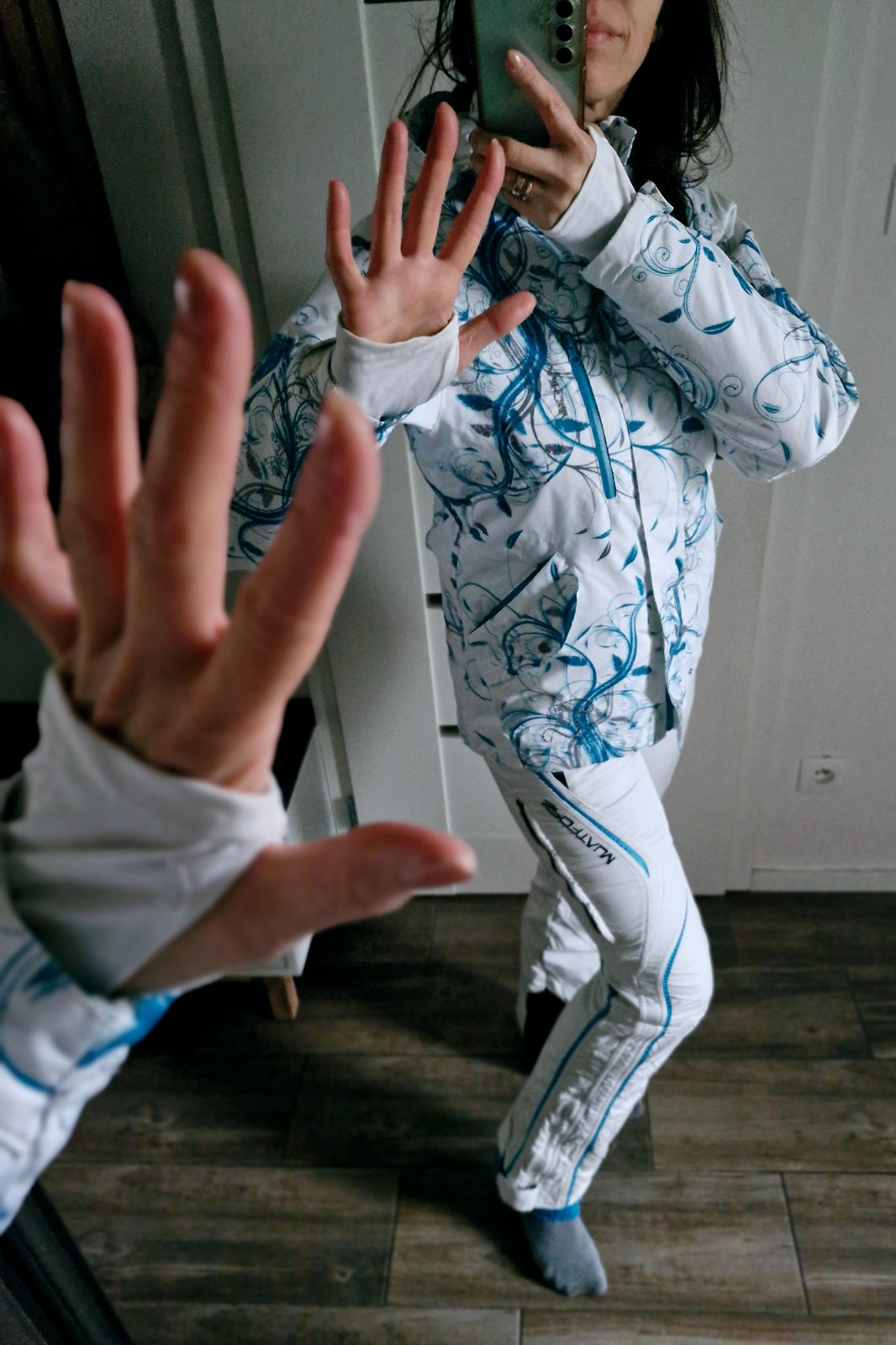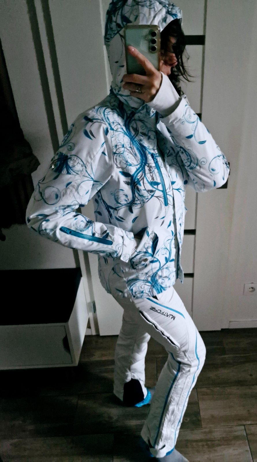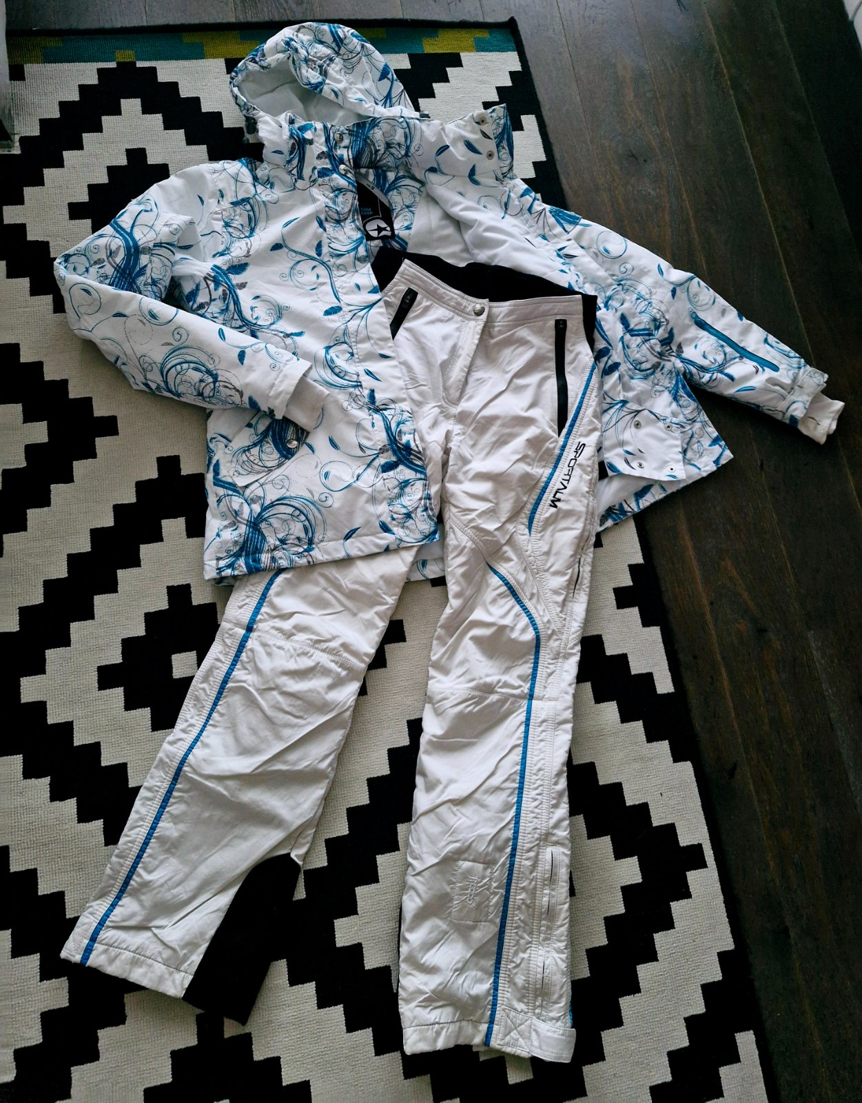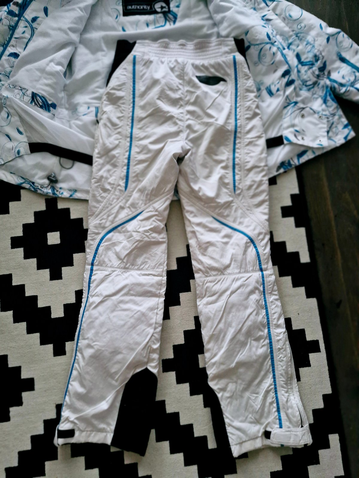 Svieza,stylova kvalitna lyziarska supravka pozostavajuca z kvalitnej bundy zn.Authority, vodny stlpec 5.000mm,nadherne farby,odnimatelna kapucna,vrecko na skipass,so sneznym pasom a nadhernymi detailami,na rukavoch patenty s moznostou navlecenia na ruku cez palec,vhodna aj na snowboard,pod pazuchami zipsy so sietkou s moznostou odvetrania,teplucka a pohodlna,v.S,ponosi aj XS-S,k tomu velmi pohodlne a stylove skvele lyziarske nohavice zn.Sportalm s dokonalymi detailami,fantasticky strih,nie celkom v snehobielej farbe,no top sa k bunde hodia,so zachrannym systemom RECCO,ktory umoznoli v pripade potreby zachranarom lokalizovat vas,v.S,zodpoveda XS-S,vysoky pas,vzadu guma,prisposobive,vyborny zensky strih,naspodu snezne pasy,moznost pohodlbeho rozopnutia pri obuvani na lyziarku,prijemne hreje aj na krizoch.