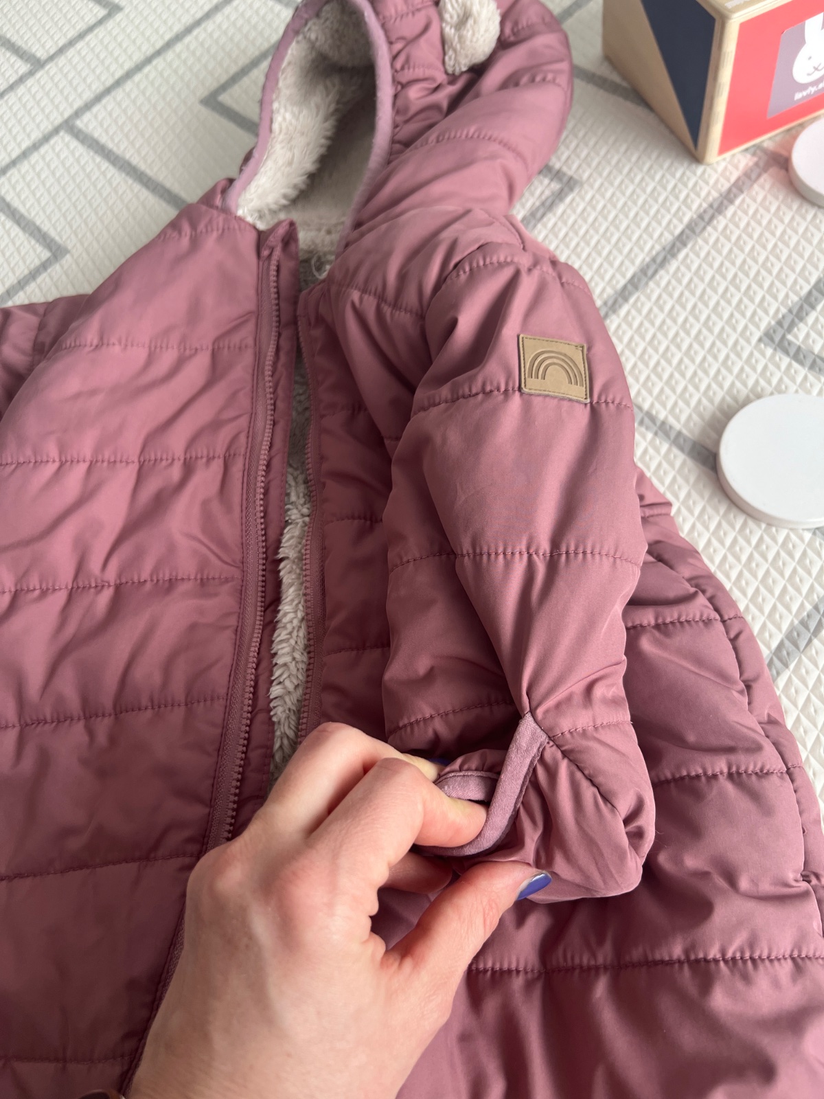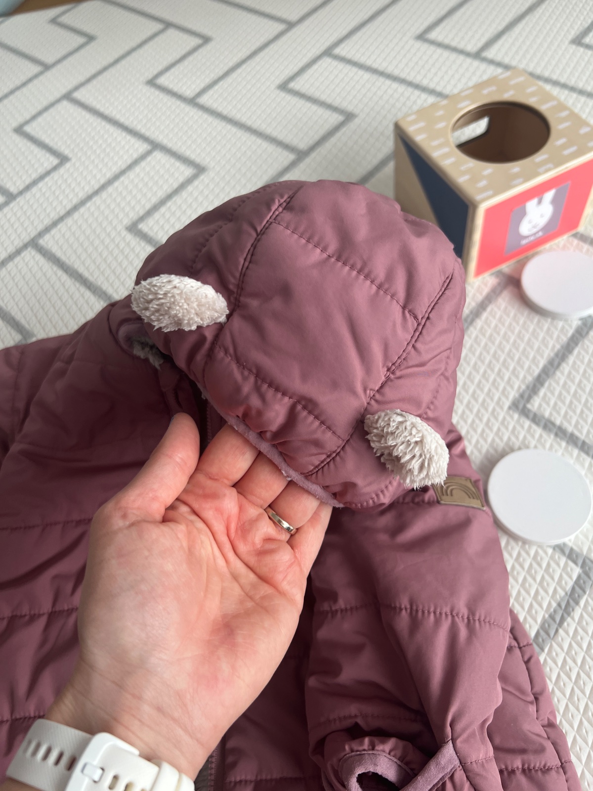 Ma aj “zatvaracie rukaviky a nohavice”, takze k nemu netreba rukavicky. Kapucka ma uska, dieta je tak ovela zlatsie a plac ovela znesitelnejsi🤣