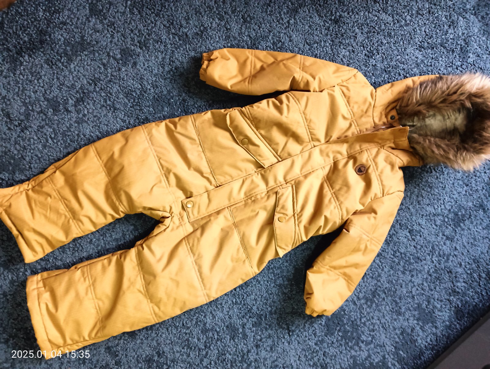 overal v top stave, nepremokavy, teplucky, ziadne osuchance na spodkoch, krasny, uvedena je velkost 104 ale radim ako 110/116 kedze je vacsi, na spodnej manzete som rucne nasila gumicky na topanky ...