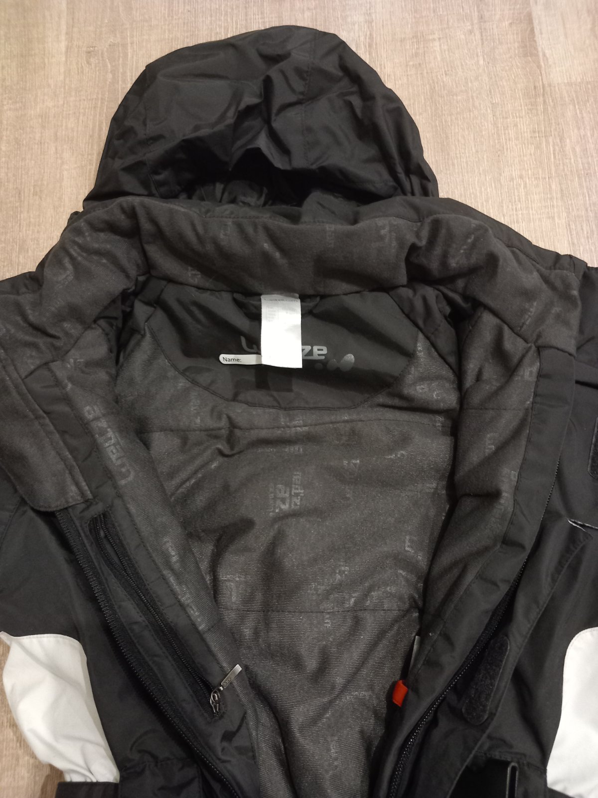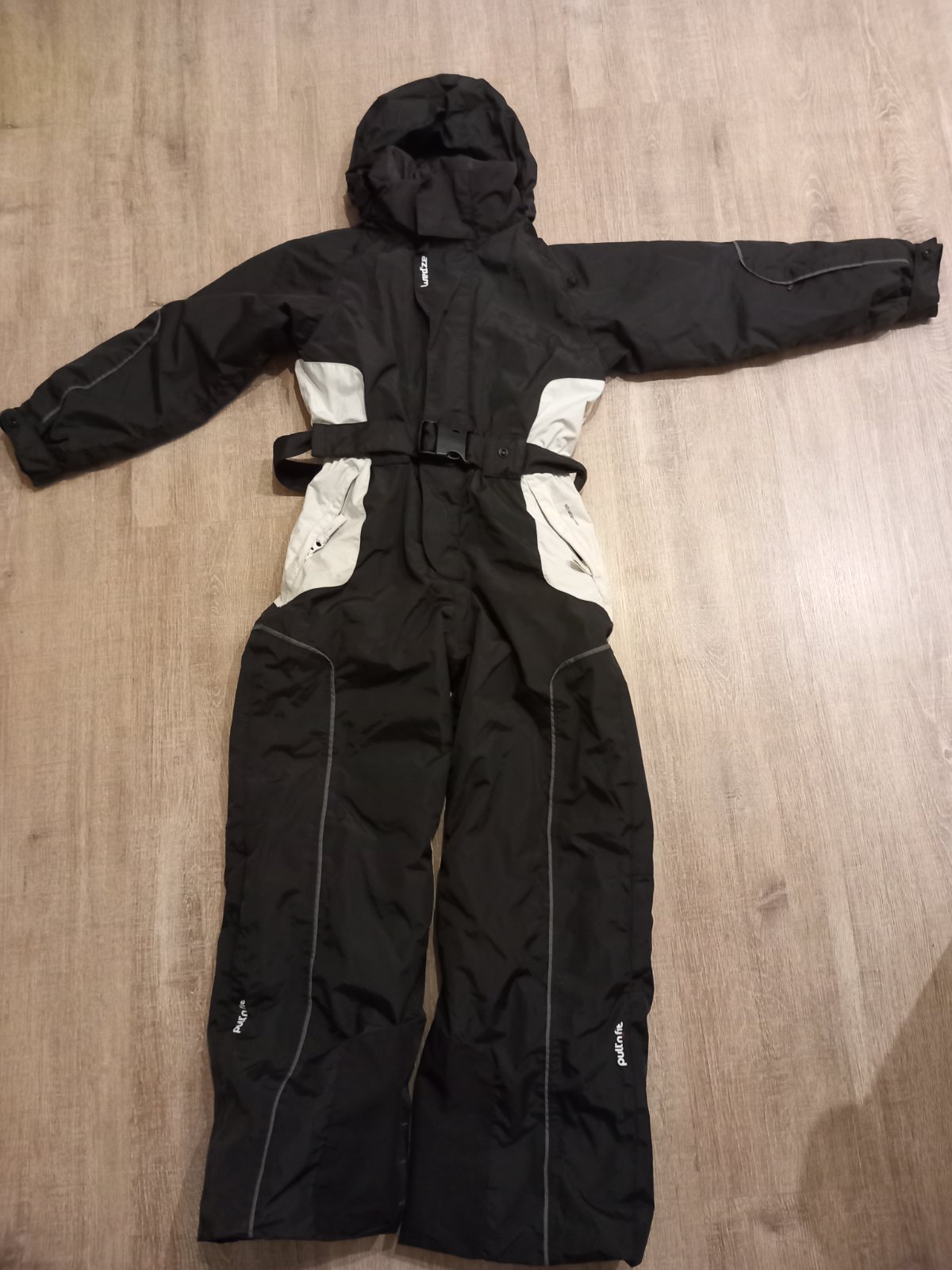 Zimná nepremokavá kombinéza s elastickým pásom. Rukávy sú zakončené elastickou manžetou. Zapínanie na zips a gombíky, šírka sa dá upraviť pomocou gombíkov vnútri obleku. Na prednej strane je vrecko...
