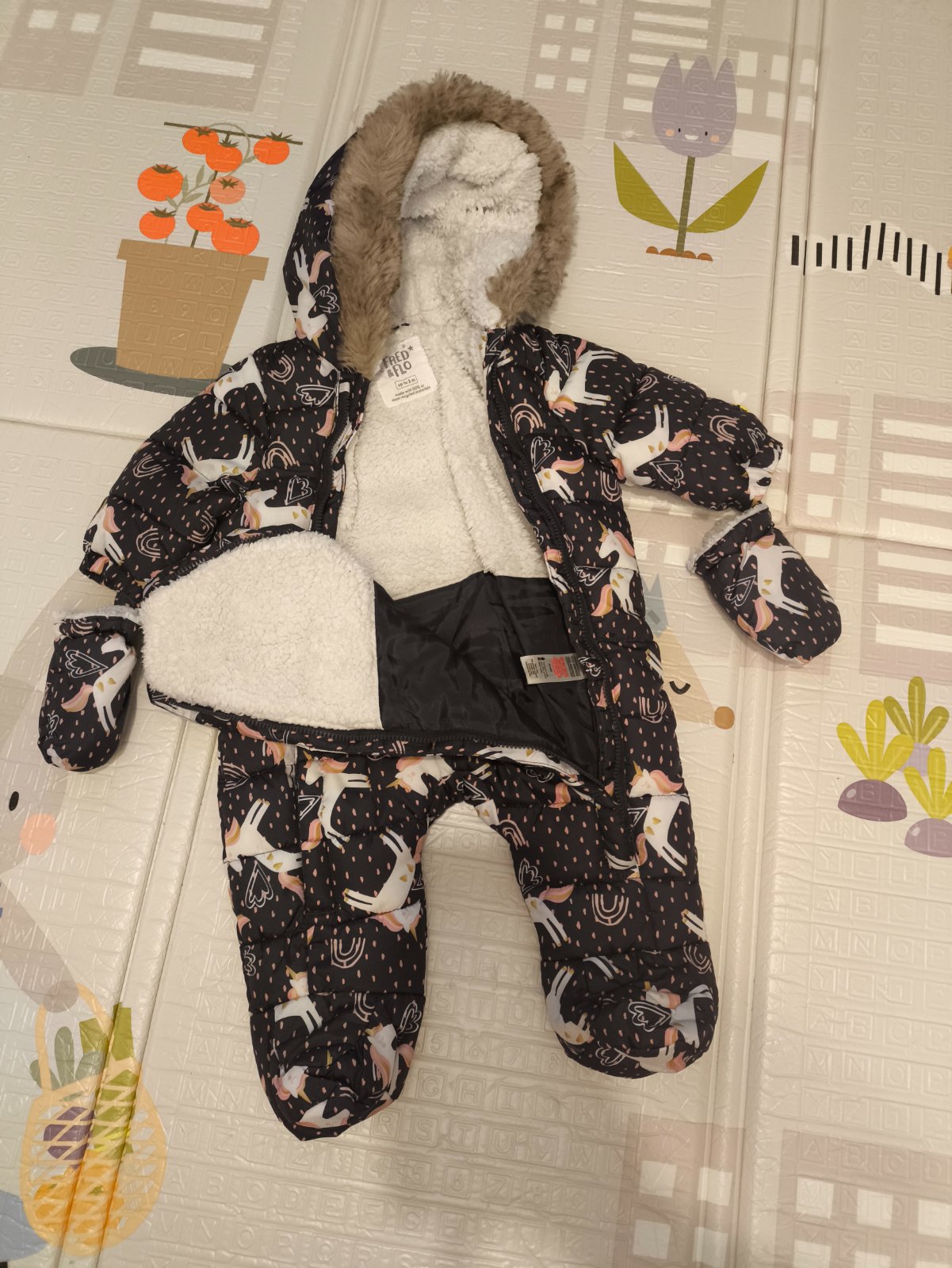 Teplý overal, kombinéza. Nádherný pre malé princezničky. Ľahké obliekanie vďaka dvom zipsom, možnosť nosiť rukavičky, uchytene na cvok z vnútornej strany sú podsite. Z vnútornej strany vyteplený ba...