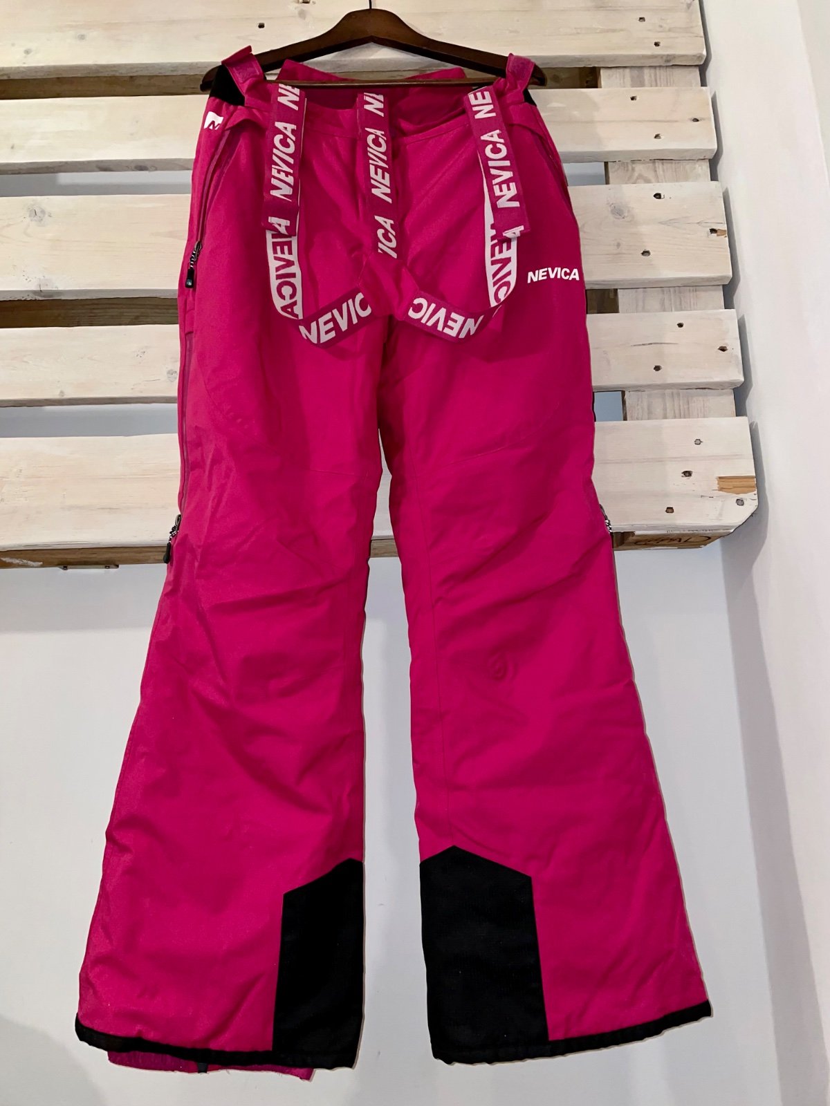Oteplovačky použité len týždeň na lyžiarskom výcviku, mierne vidieť medzi nohami znečistenie od lyžiarskej pomy.