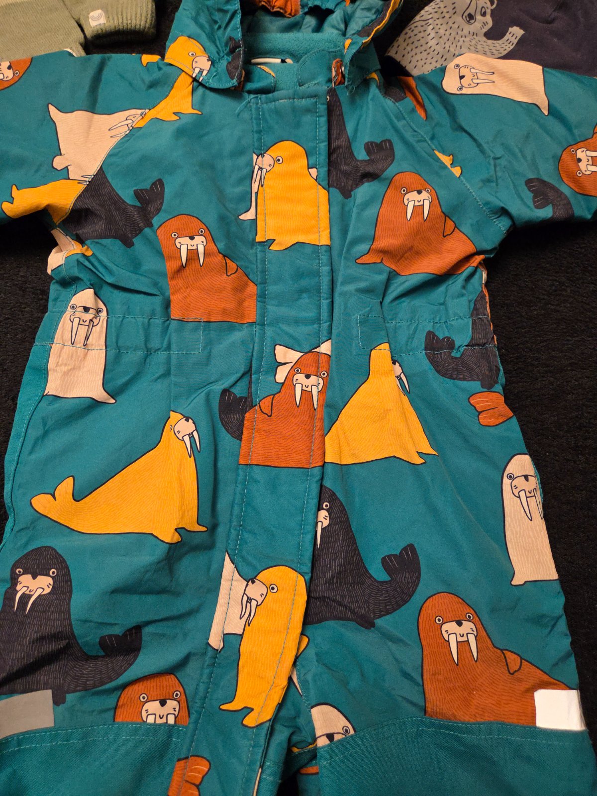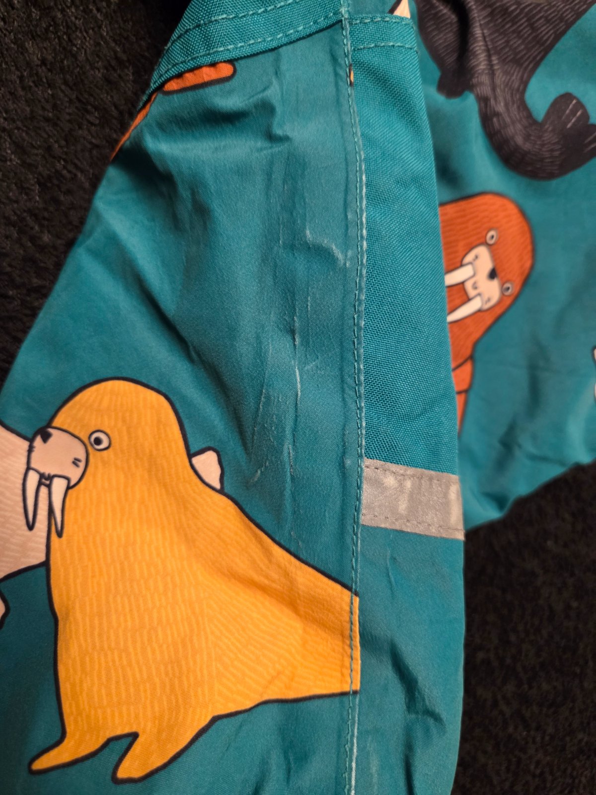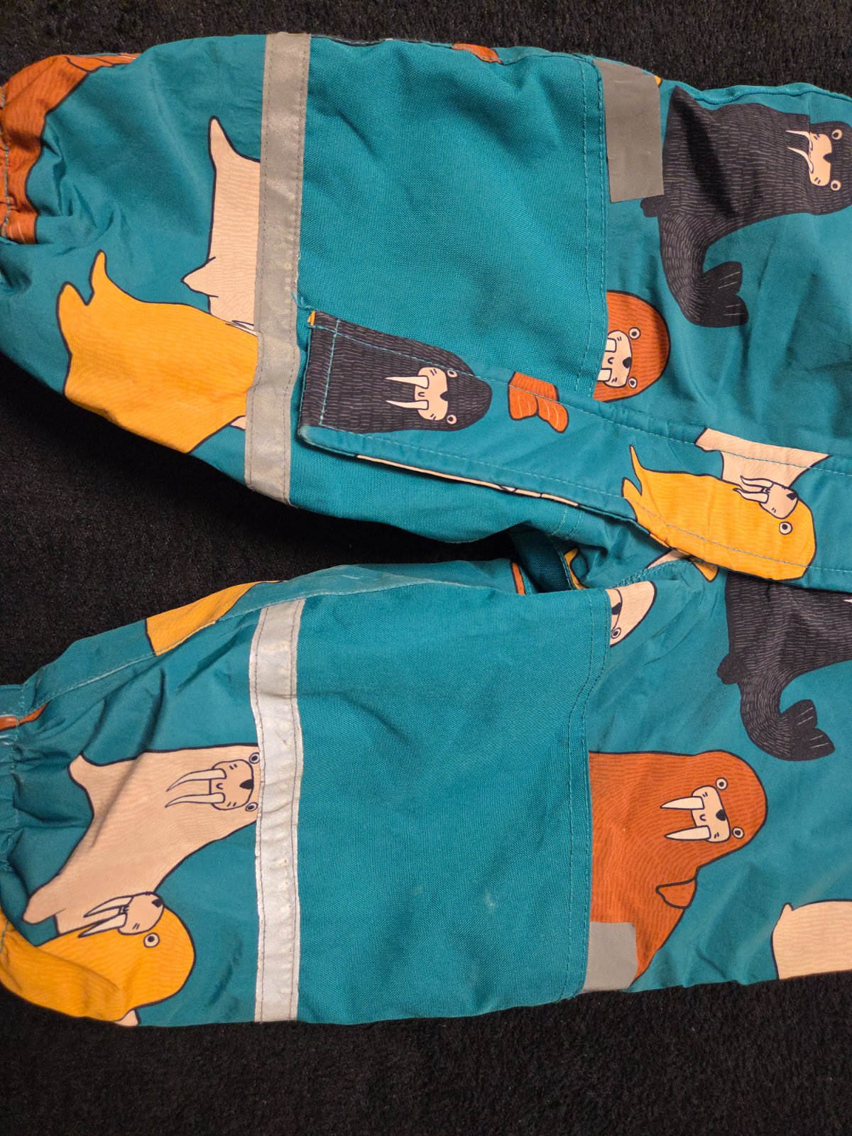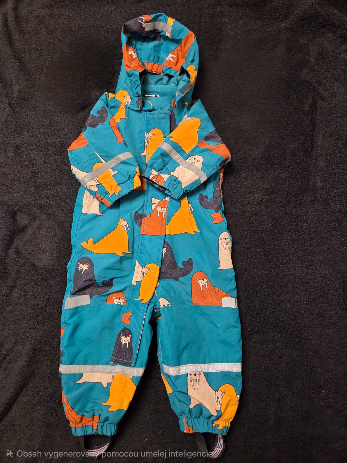 Drobne znamky pouzivania, ale stale vo velmi peknom stave. Kombineza suchnuta medzi nohami, menene reflexne pasiky za original Lindex.