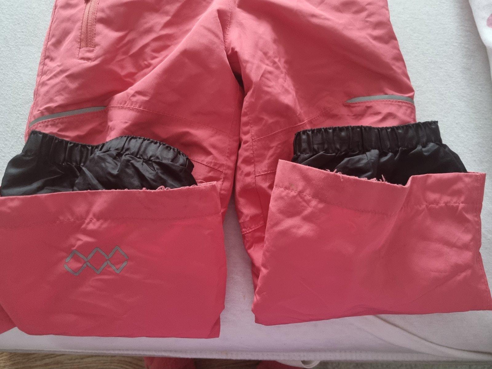 Teplé lyžiarske nohavice do snehu, na nastaviteľné traky, v spodnej časti patent. Nosené málo, nepoškodené. Veľkosť 98/104, dĺžka 60cm, vnútorná dĺžka 40cm, pás 2x28 až 2x32cm.