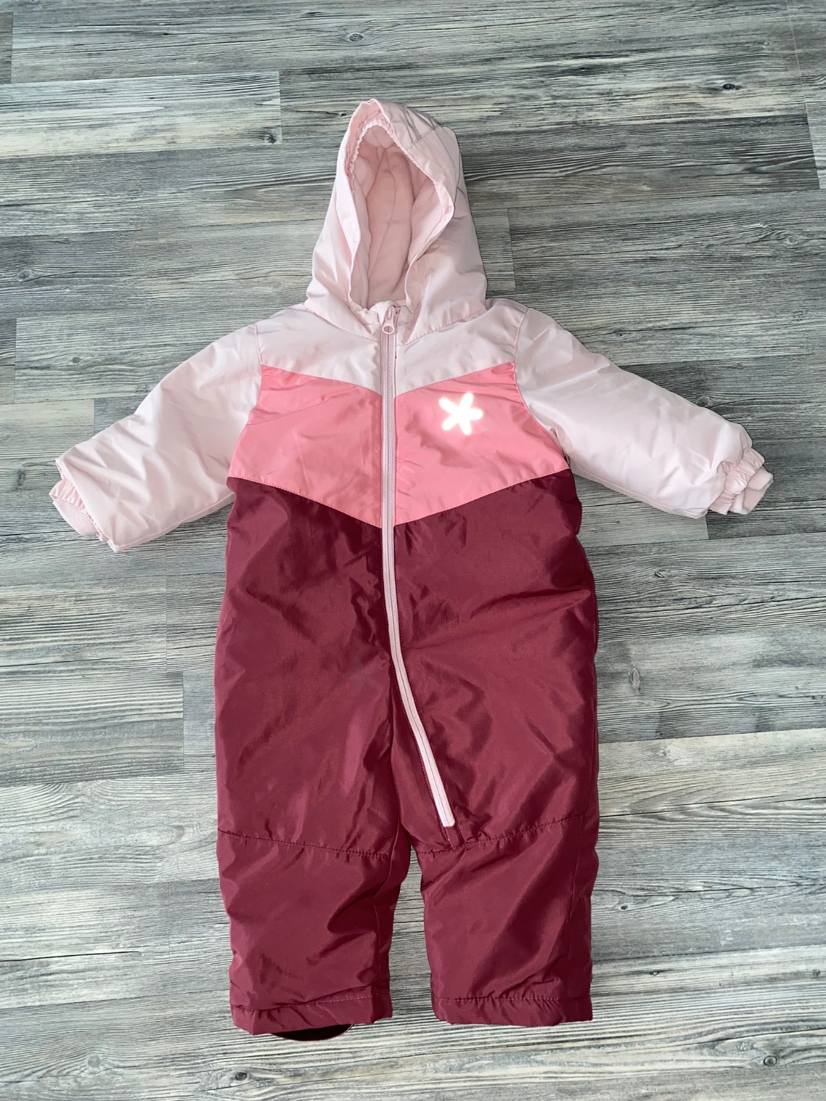 Noseny zimný overal pre dievcatko,veľkostne 86/92 kupovaný v Lidli.Nosenie vidno na gumickach -na spodnej strane.Cena 8€+poštovné