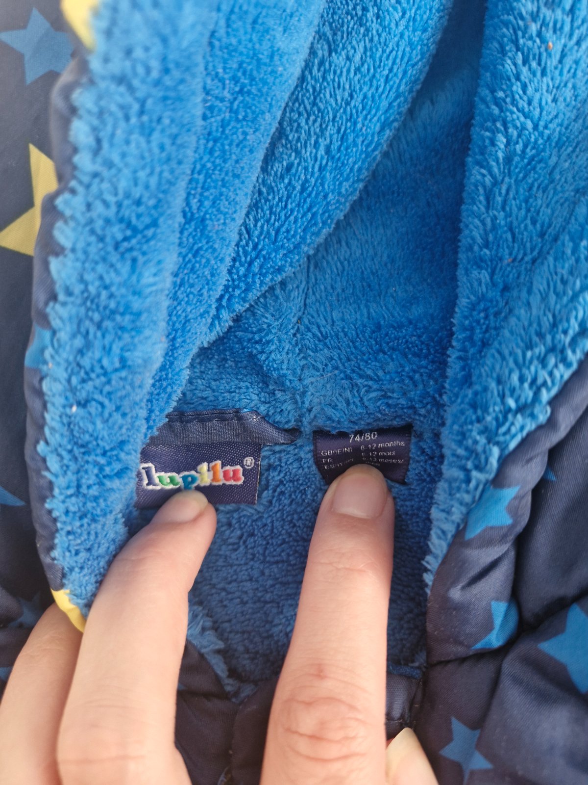 Lupilu, veľ. 74/80, vek 6-12m. Zateplený mäkkým flisom. Kapucňa sa dá odpojiť (cvoky). Nohy do gumy, otvor nohavíc možno úplne zúžiť pružnou gumkou a gombíkmi, aby sa chránilo teplo. Rukáv do gumy ...