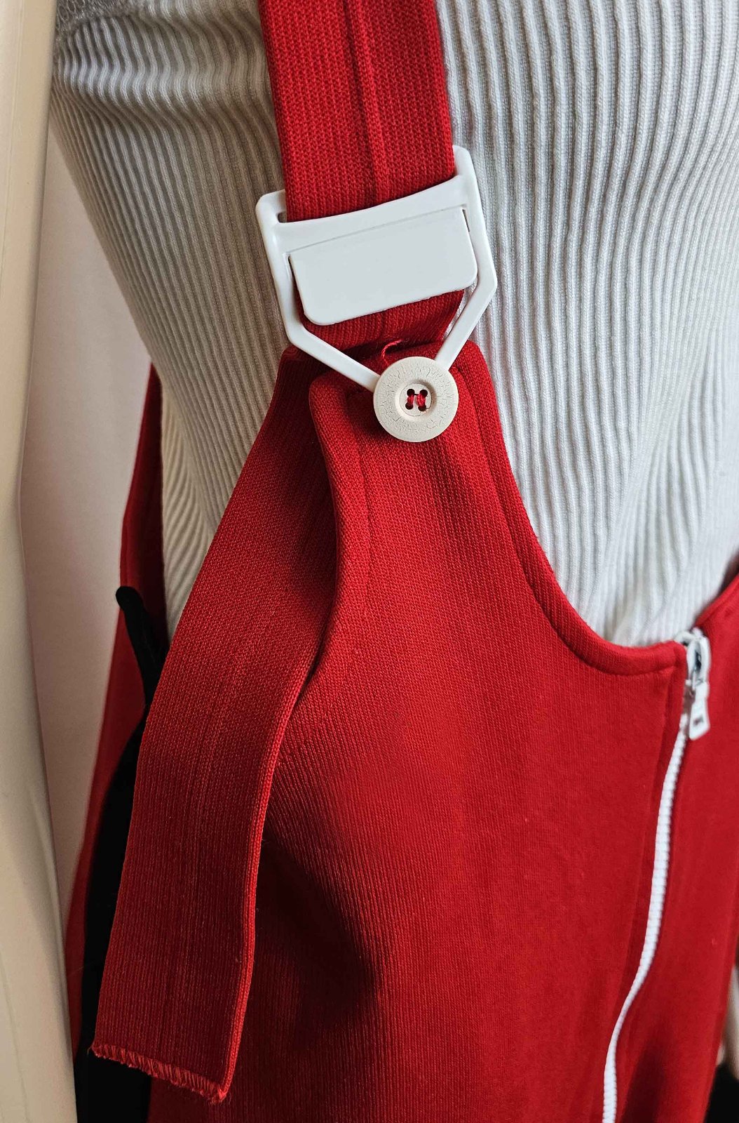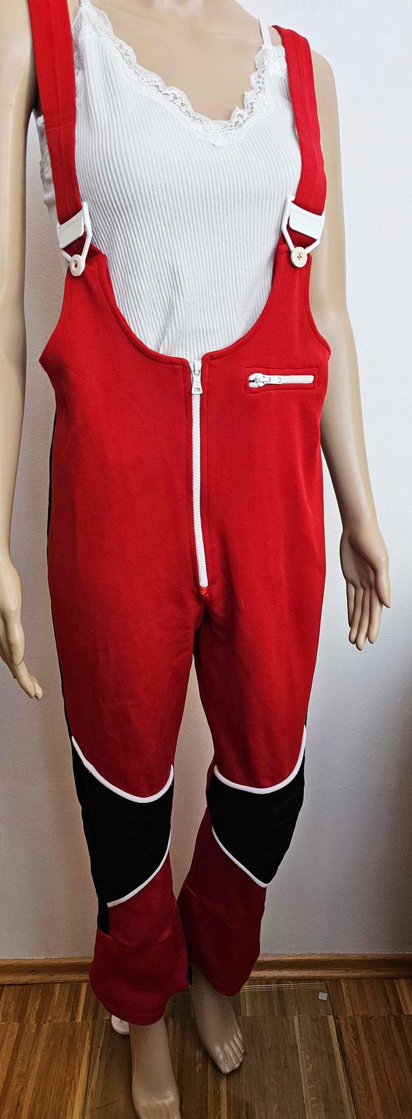 Nohavice - boky 55-60x2 cm, dĺžka vonkajšia 50 cm + traky, dĺžka vnútorná 70 cm. Pevný, elastický a hrejivý materiál. Veľ. 38/40.