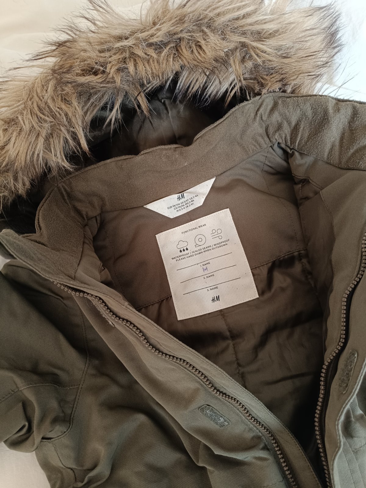 Použitý overal v dobrom stave. Rastúci, kapucňa je na suchý zips.