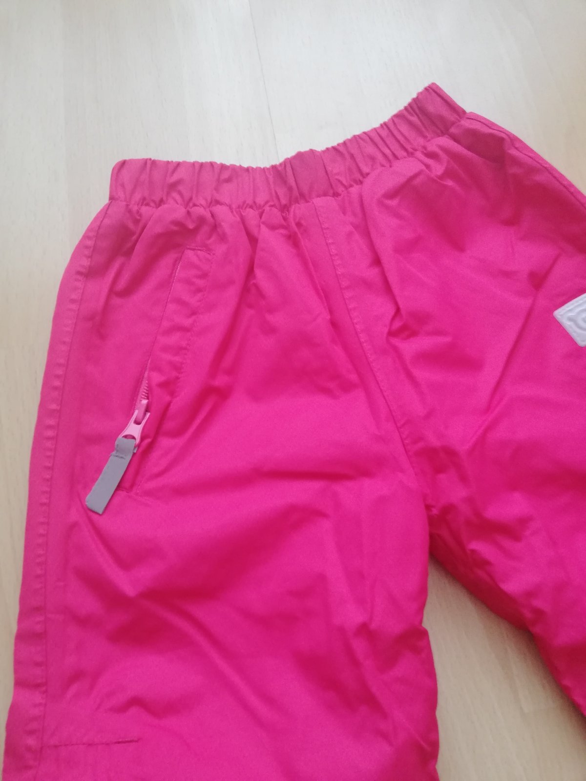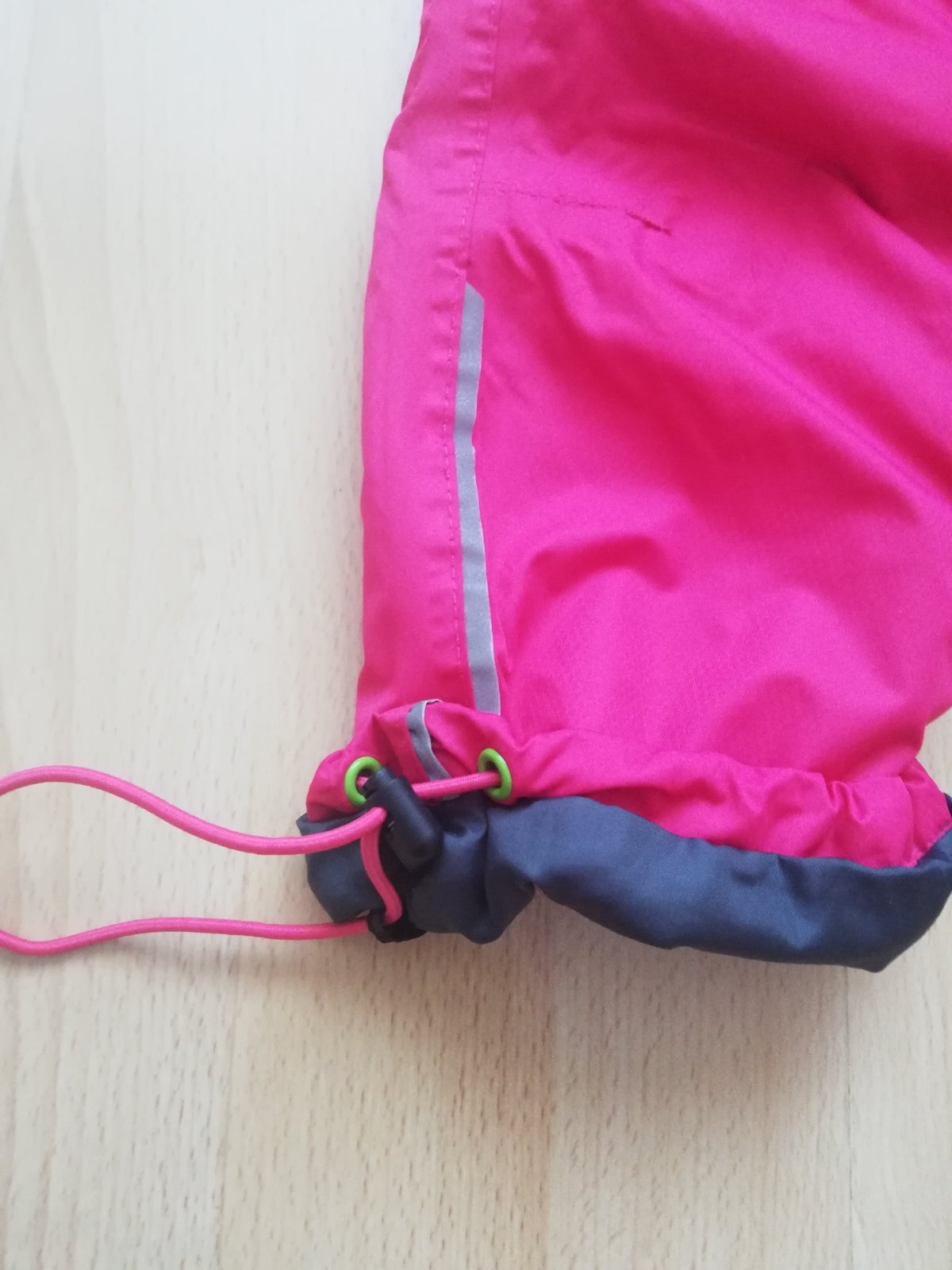 Dievcenske oteplovacky zn. Gmini do pasa na gumicky, reflexne prvky na nohach a stahovacie gumicky s regulatorom dolu, vrecko na zips vpredu. Vel. 98, bez poskodeni, ako nove