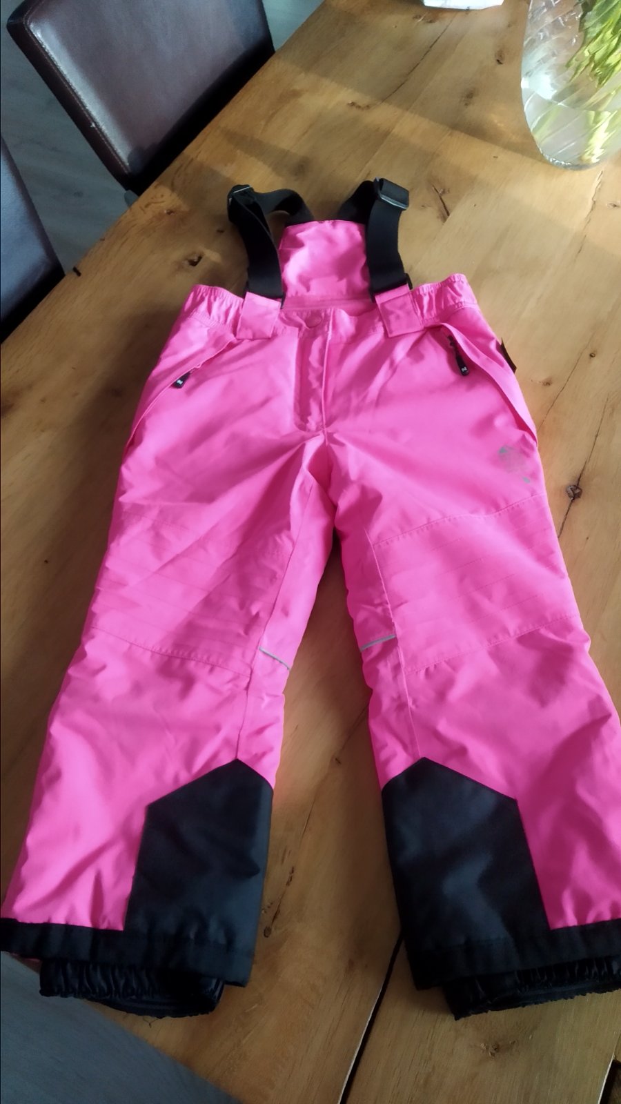 Oteplovaky C&A , veľkosť 110, farba je neonovo ružová. Na kolienkach zvnútra zboku trosicku suchnute, vid foto, ale nie je to dierka. Inak top stav. Oblecene 2x. Dcéra z nich rýchlo vyrástla.