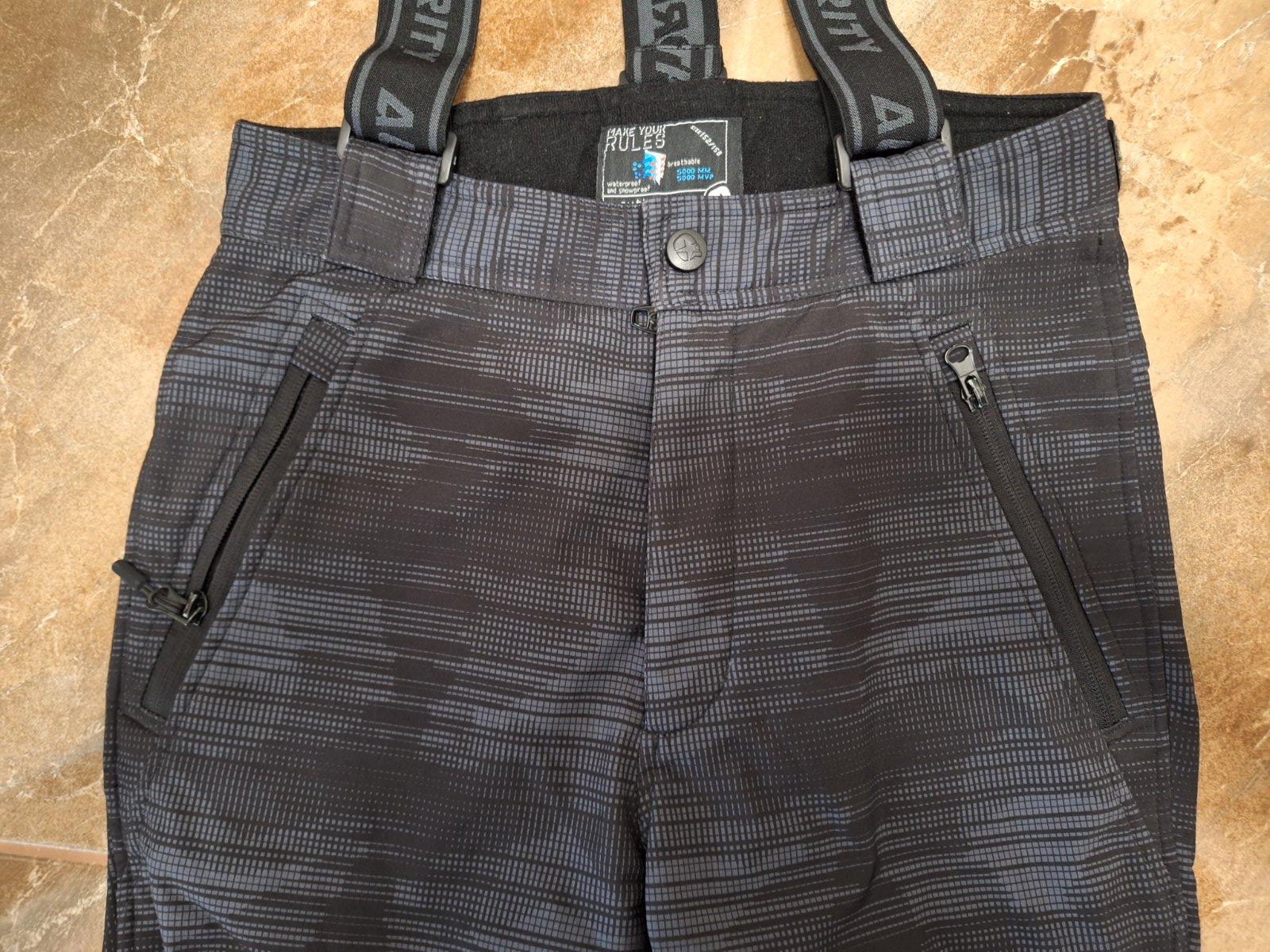 Softshelové oteplováky 152/158 s odmímateľnými nastviteľnými trákmi, regulovateľným pásom, pásmi proti snehu. 5000 vodný stĺpec. Iba pár krát použité, v top stave.