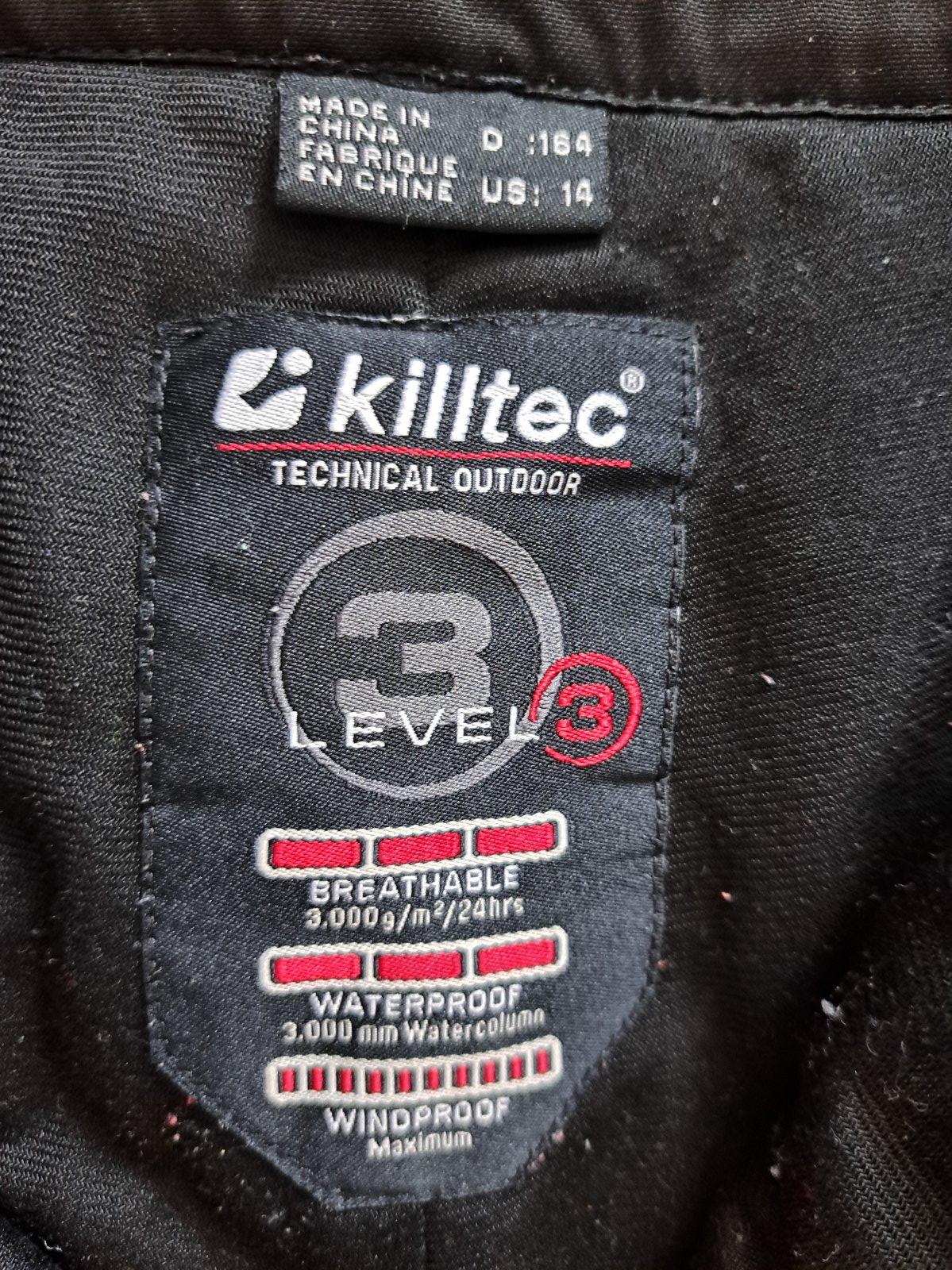 Kvalitné oteplováky Killtec č. 164. Vodný stĺpec 3000, vetruodolné. Spodné okraje majú známky používania a na jednej nohavici dole jemne dierky, pri nosení to nemá ziadny vplyv a nie je to ani moc vidno. Na kolenách jemné ošuchnutia. Všetko nafotené. Preto tá nízka cena. Celková dĺžka 93 cm, pás 37 cm.