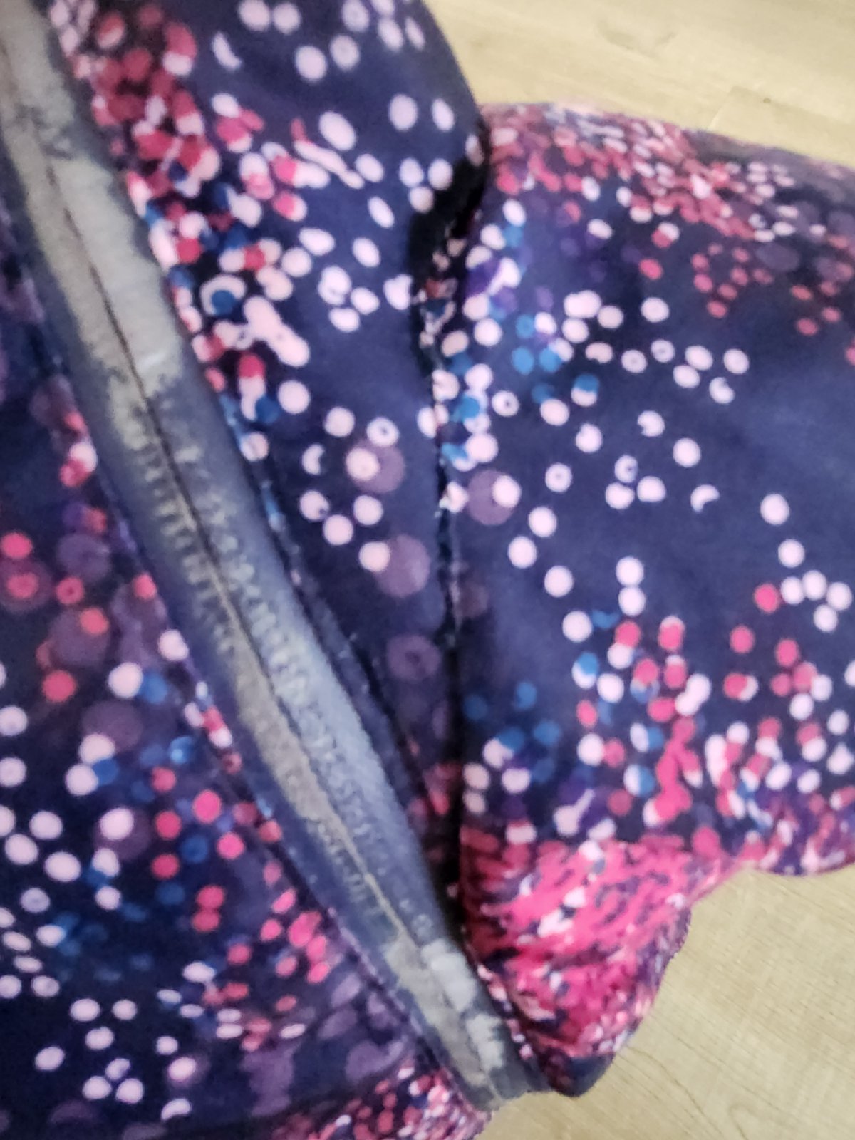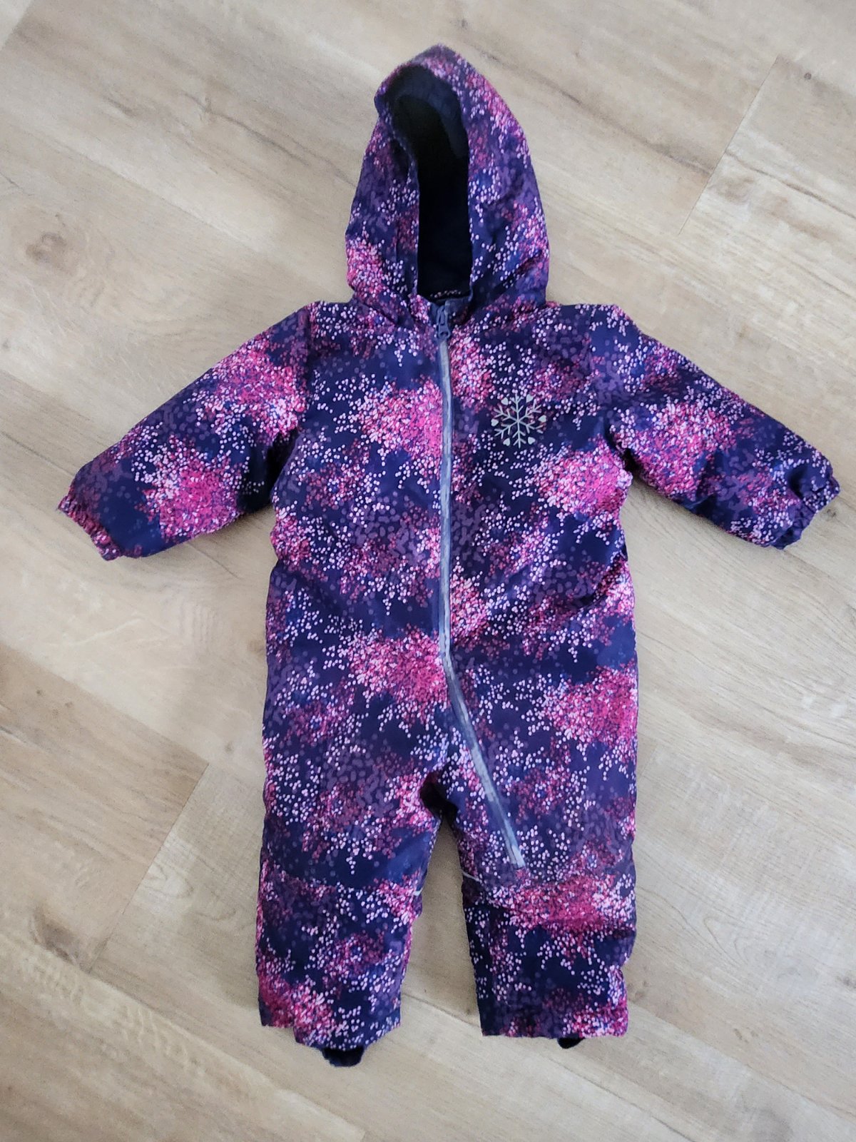 Super overal, vobec na nom nebolo vidiet spinu, nepremokol a pekne sa dal zladit s doplnkami roznymi. Nosili sme ho radsej ako lindex. Medzi nozickami bol uz zasivany, spodok je tmodrata latka - da sa podohnut, lebo bol trocha vacsi a zips ma esteticke poskodenie - vid foto.