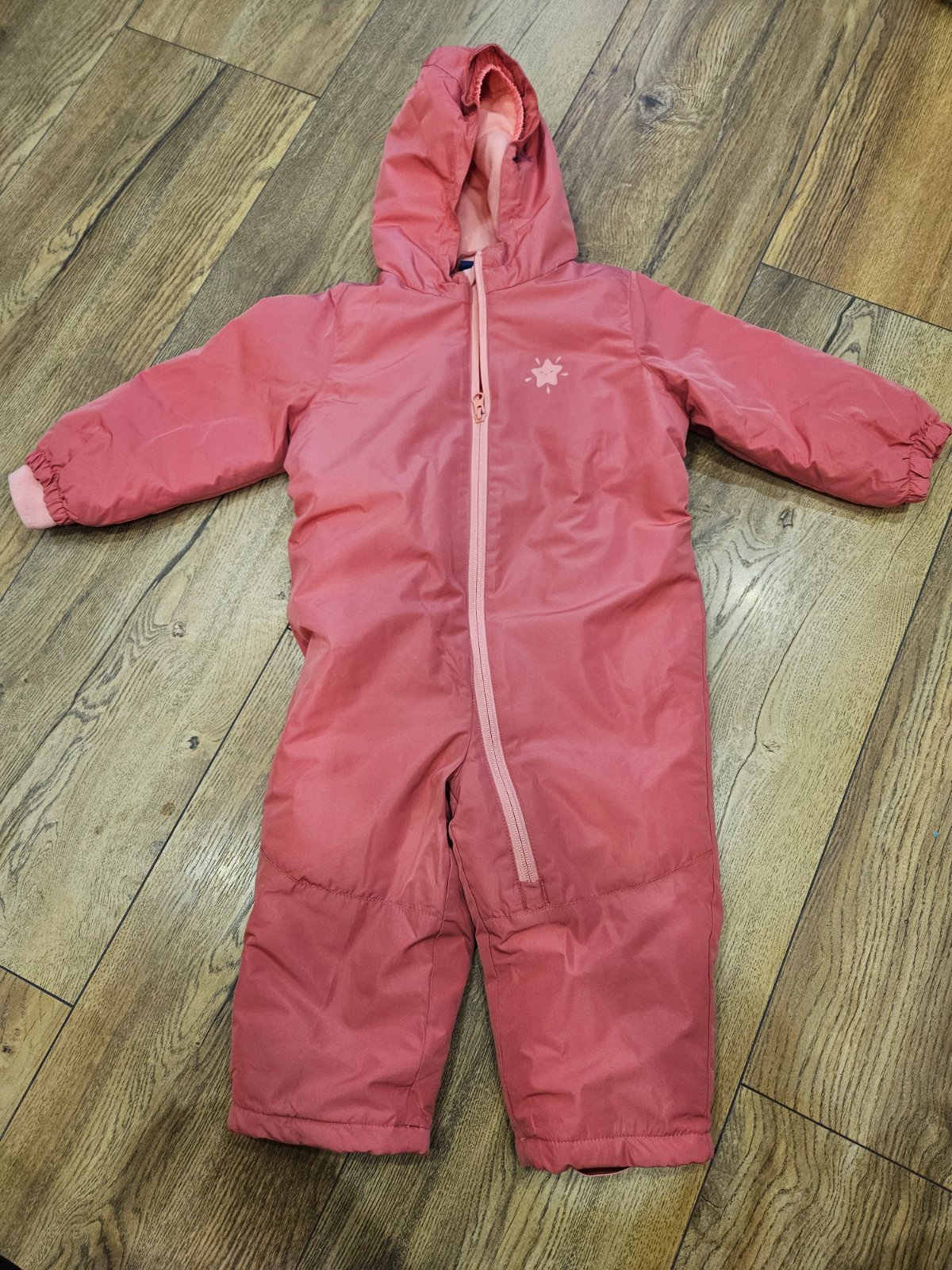 Skvelý overal na chladnejšie počasie. Veľkosť 86/92. Rukávy aj nohy sa dajú zahnúť a schovať tak rúčky aj nôžky. Bez poškodenia. Nosený iba v kočiary.