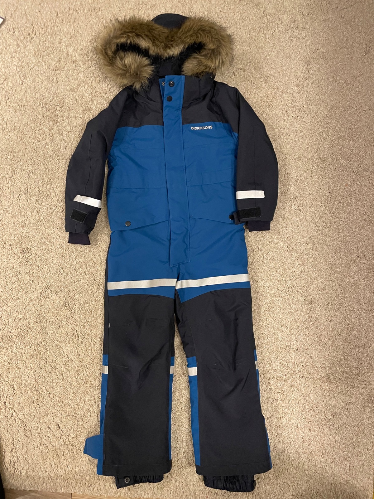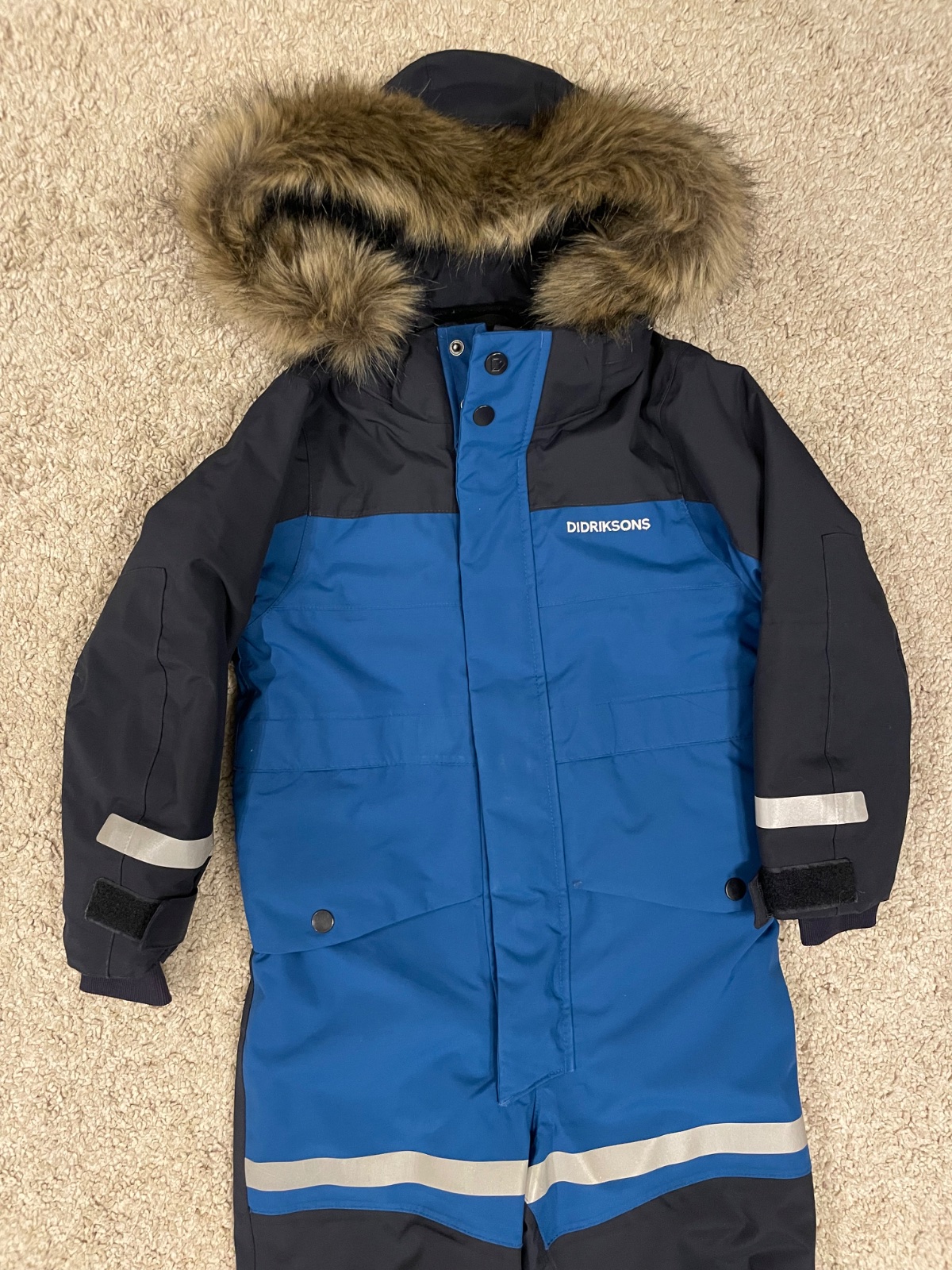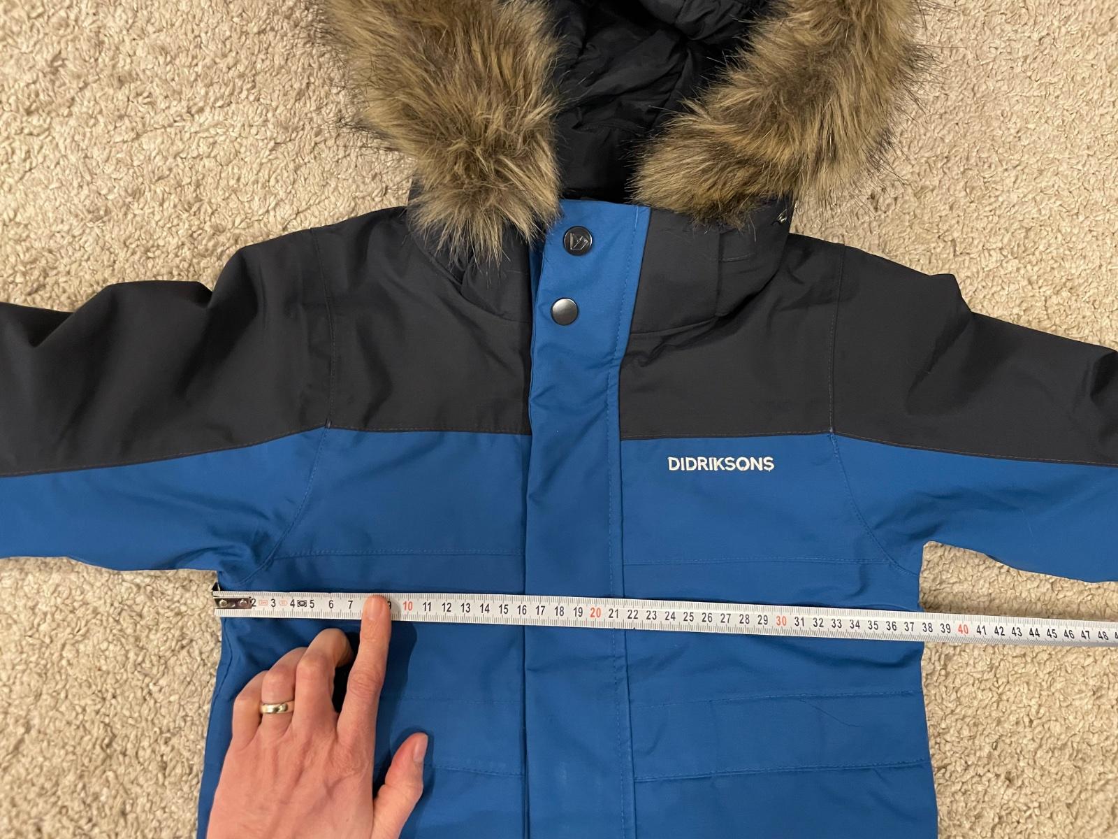 Predam kvalitny zimny overal znacky Didriksons. Povodne dvojcislo 110-116, ale uz je zvacseny na velkost 116. Rozmery na fotkach. Vhodny na stihlu postavu. Vypraty a naimpregnovany zehlenim podla popisu. Zadna cast bez poskodeni - nevysuchana. Mierne vysuchany na kolenach - vid foto. Jedine poskodenie - predraty spodny lem nohavic (jeden rok bol synovi dlhy, tak ich suchal). Kozusinka na kapucni sa da odopnut. Cena 40eur osobny odber v BA alebo plus postovne.