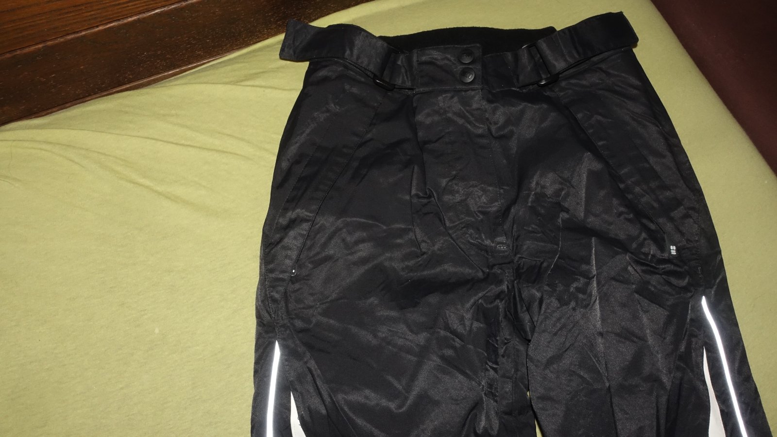 Rozmery: celkova dlzka od pasa: 100cm, dlzka nohavice od rozkroku: 74cm, sirka v pase: 35cm (v pase su suche zipsy na stiahnutie), sirka stehna pri rozkroku: 28cm