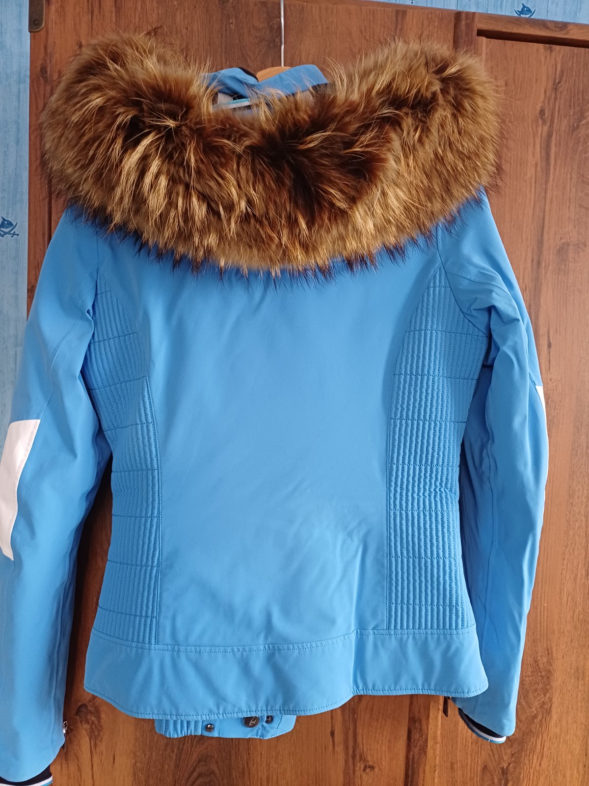 Kvalitná lyžiarska súprava vo veĺmi peknom stave. Žiadne viditeĺné poškodenia. Mini zaškrabnutia od lyží na spodku nohavíc. Nádhermá kožušina na kapuci. Každý si vás na svahu v nej všimne. Predajná cena 1400 rur.