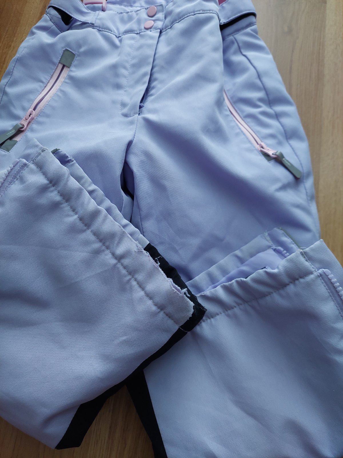 Nosené, na kolenách mierne vysuchané. Dcére boki dlhsie takze osuchaný spodok, vid foto.