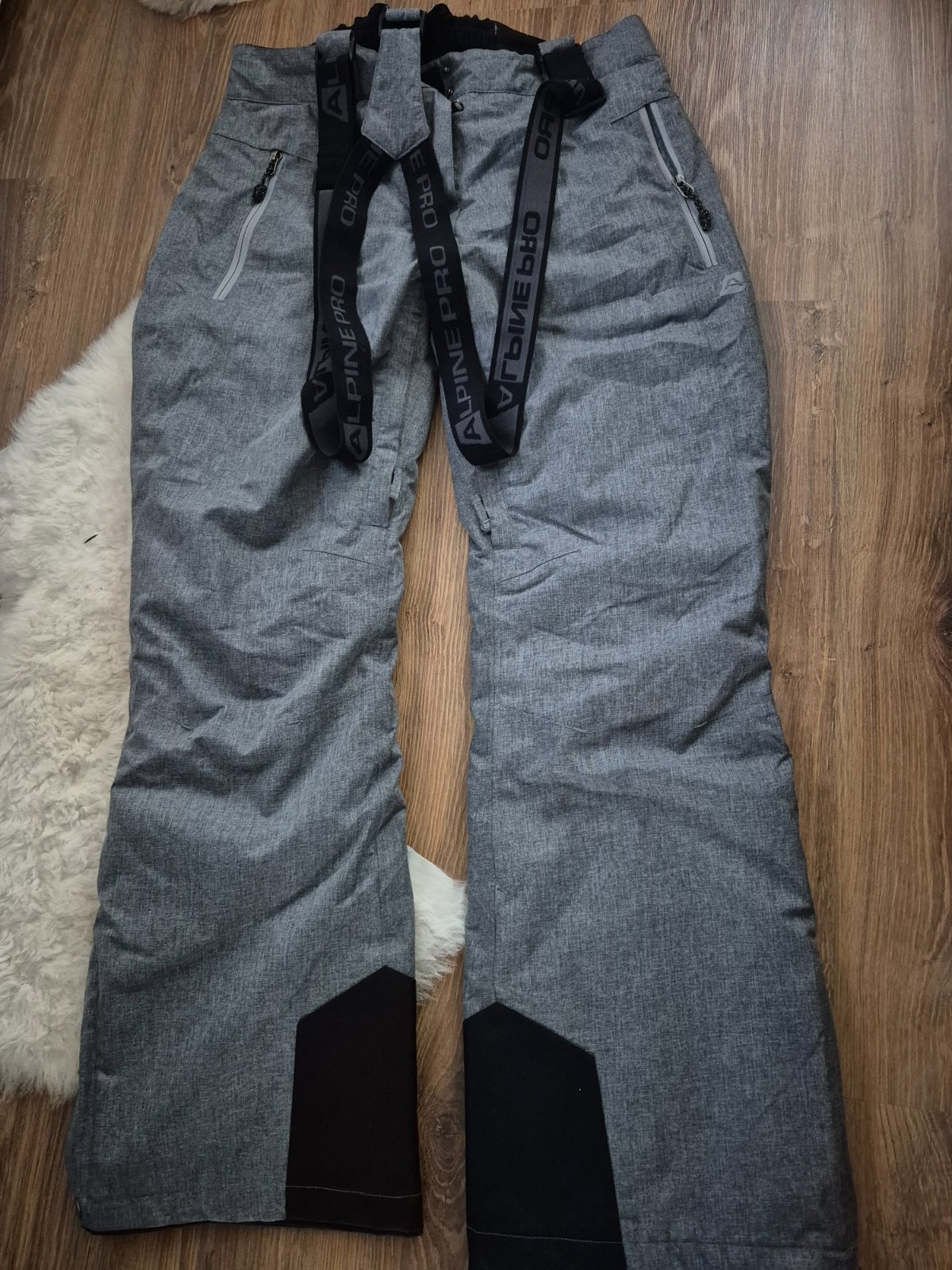 Nosené len veľmi málo, ale stále v dobrom stave, nosené len v zime, keď bolo veľa snehu. Sú to nohavice zateplené, hrubšie, niečo ako otepľovačky. Farba tmavosivá. V zadnej časti pása je široká gum...