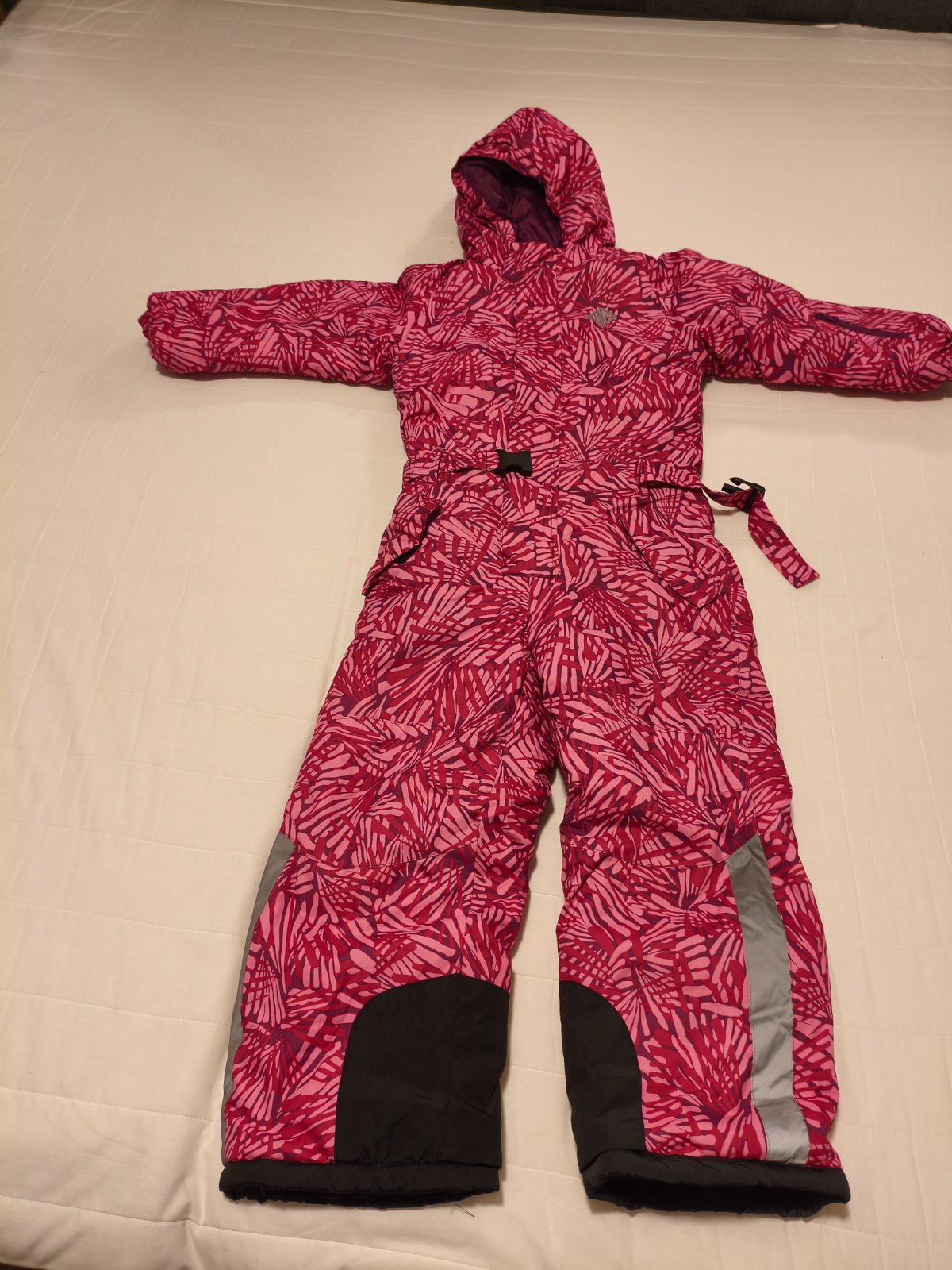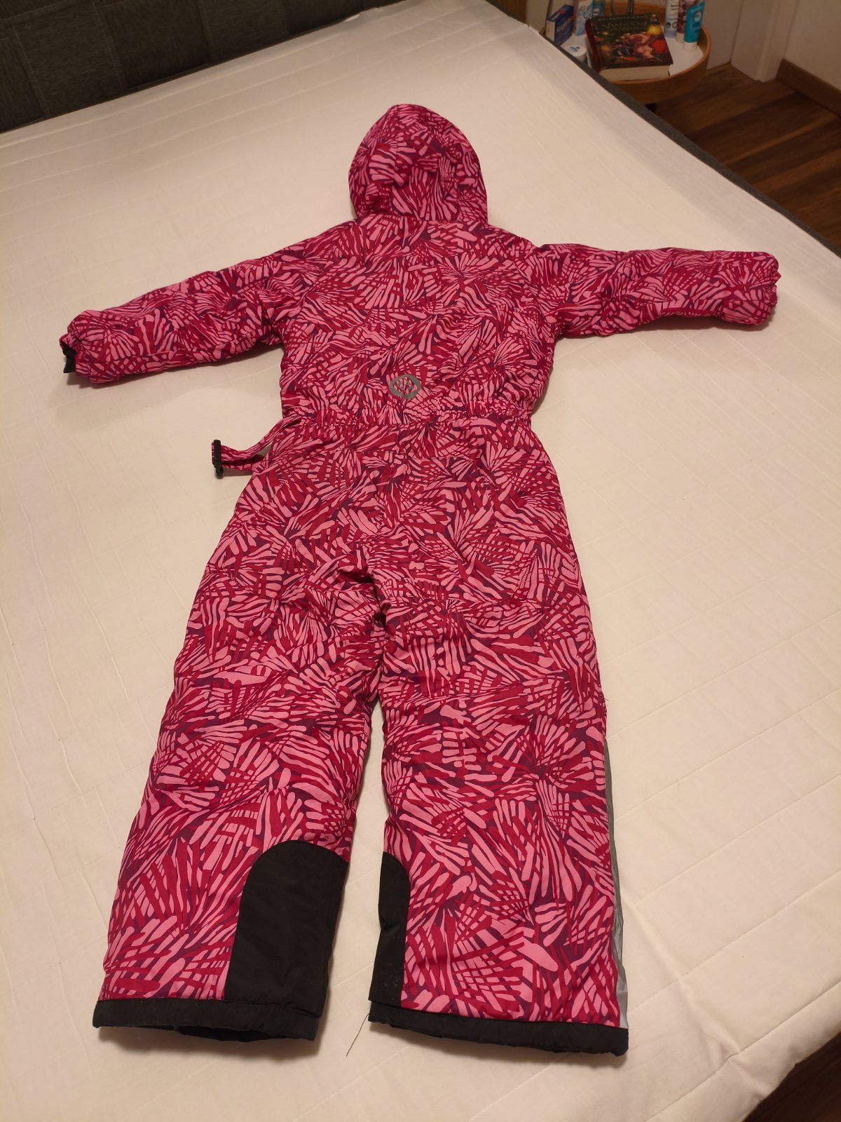 Zimná nepremokavá kombinéza s elastickým pásom. Rukávy sú zakončené elastickou manžetou. Zapínanie na zips a gombíky, šírka sa dá upraviť pomocou gombíkov vnútri obleku. Na prednej strane je vrecko...