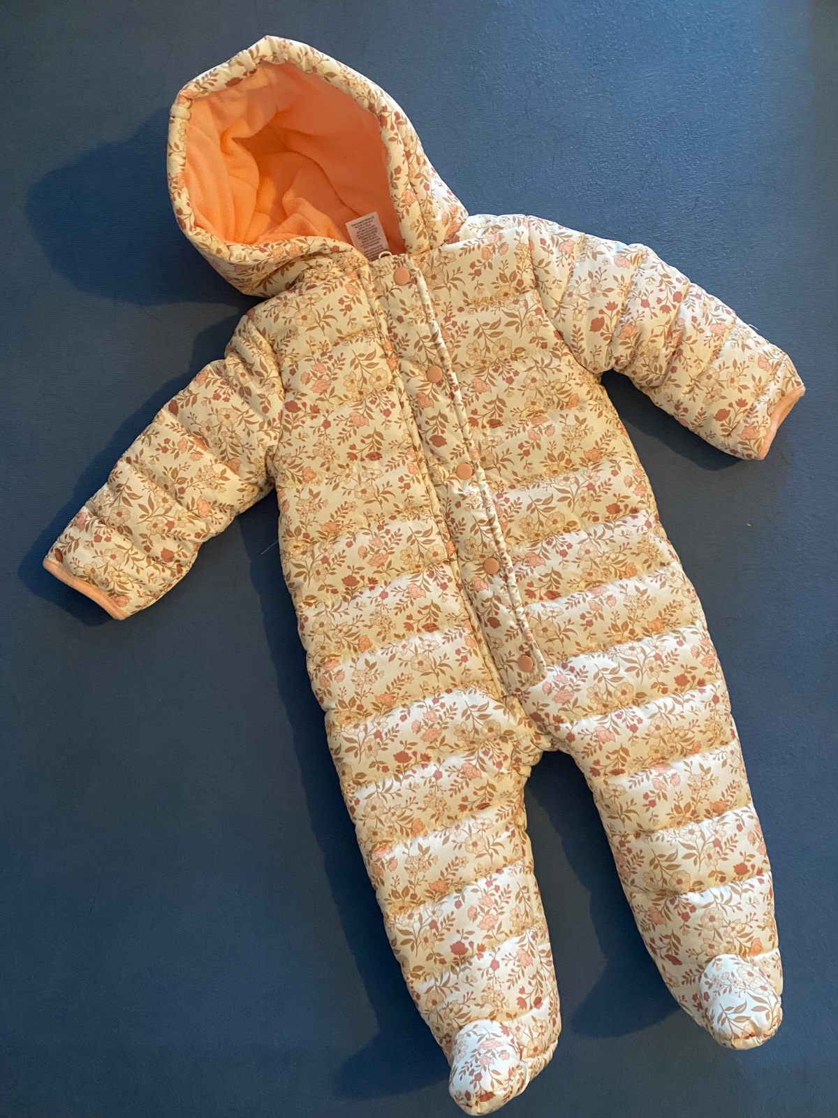 Teplucku kombinezu a fusak v jednom. Praktické zapínanie na 2 zipsy. Má otvor na bezpečnostné pasy. Plne funkčná. Sú k tomu aj rukavice v tej istej farbe, z toho istého materiálu. Ako nova, par kra...