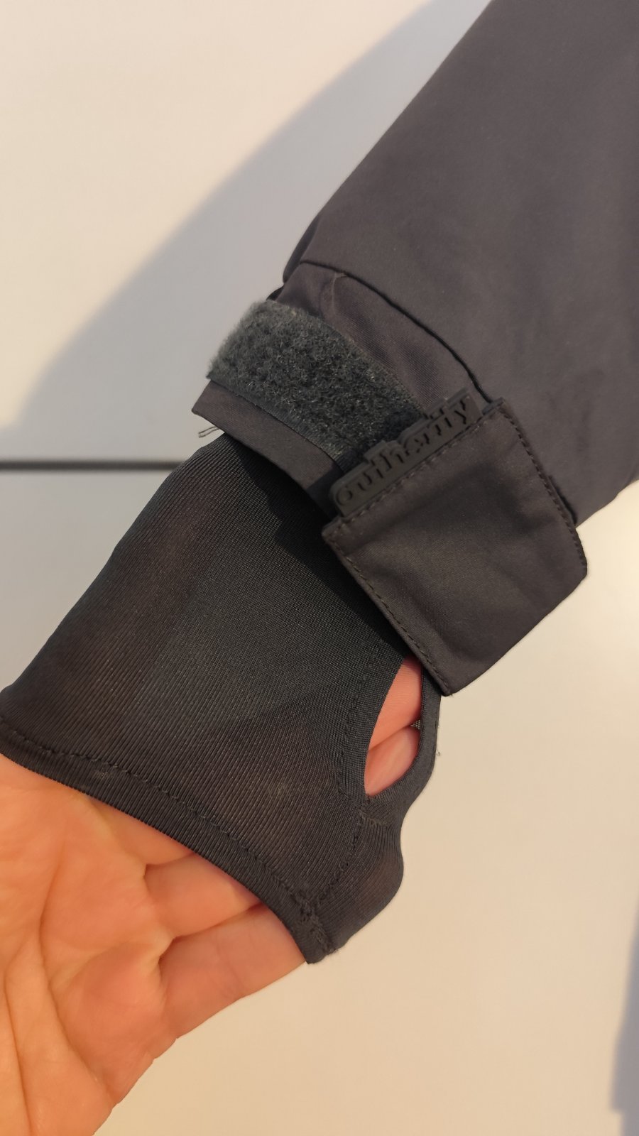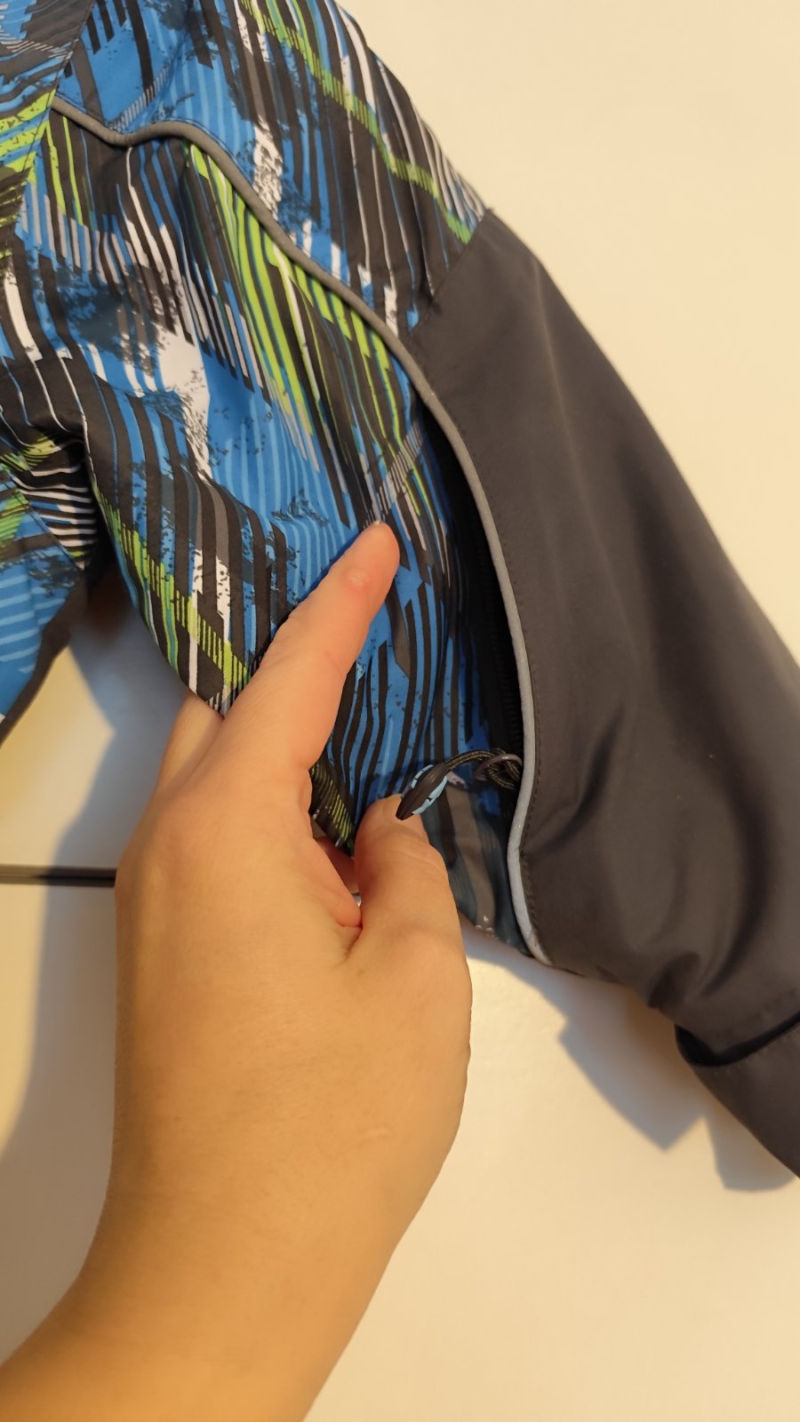Rukáve majú vloženu ochranu na ruky pokiaľ nie sú potrebné rukavice, taktiež kryté vrecko.Vrecká sú všetky na zips. Kapucňa sa dá prispôsobiť v šírke , dĺžke a taktiež sa dá úplne odopnuť.