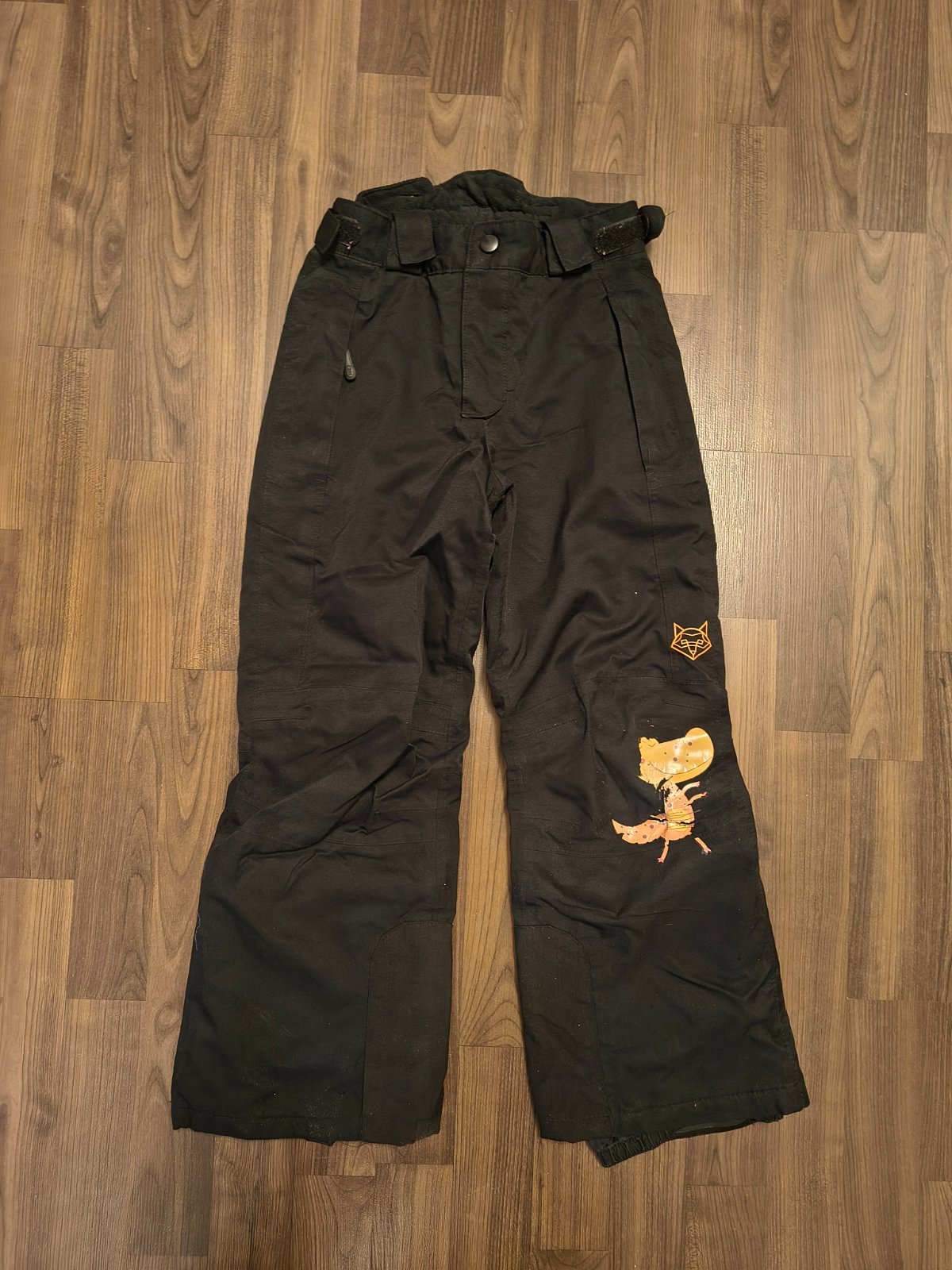 Predám chlapčenské oteplovačky čiernej farby. Malé roztrhnutiu na kolene je zašité a prekrytě nažehlovačkou.
