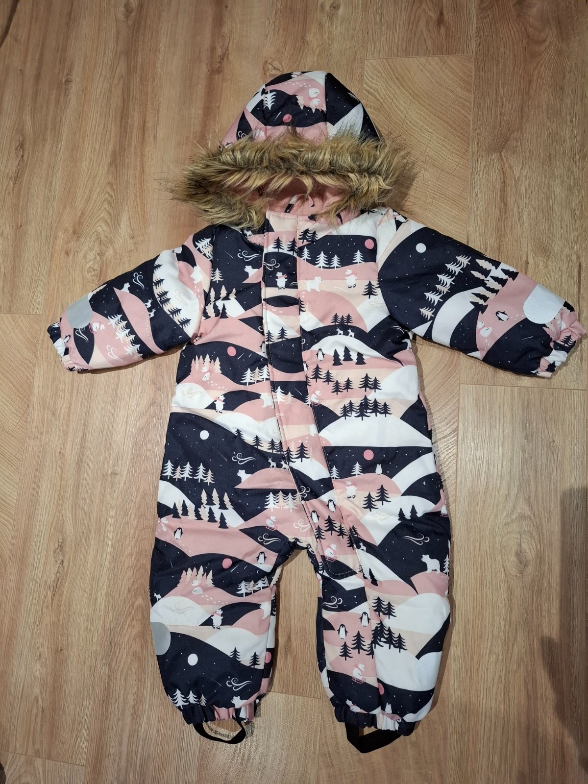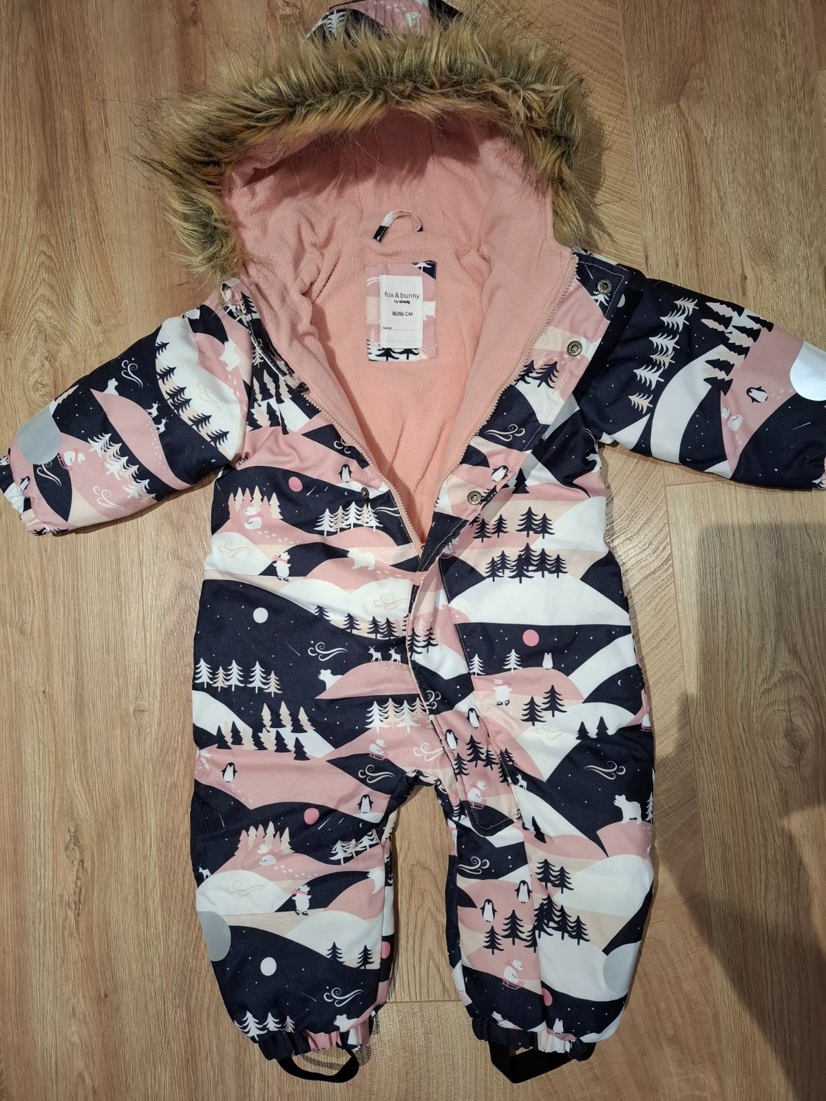 Perfektný zimný overal Ducksday. Ľahký, ale zároveň hrejivý. Veľkosť 80, nositeľny do veľkosti 86. Má žmolky na okrajoch rukávov a nôžkách.