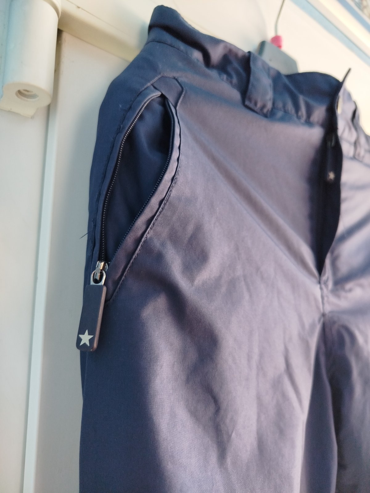 - všetko pofotene, na kolene som našla jedno šuchnutie, nie je tam diera, celkom dole vzadu vidno nosenie, šuchnuté, ale dobry stav, teplé, hrubé, v pase guma, šírka odfotená, ešte povolí