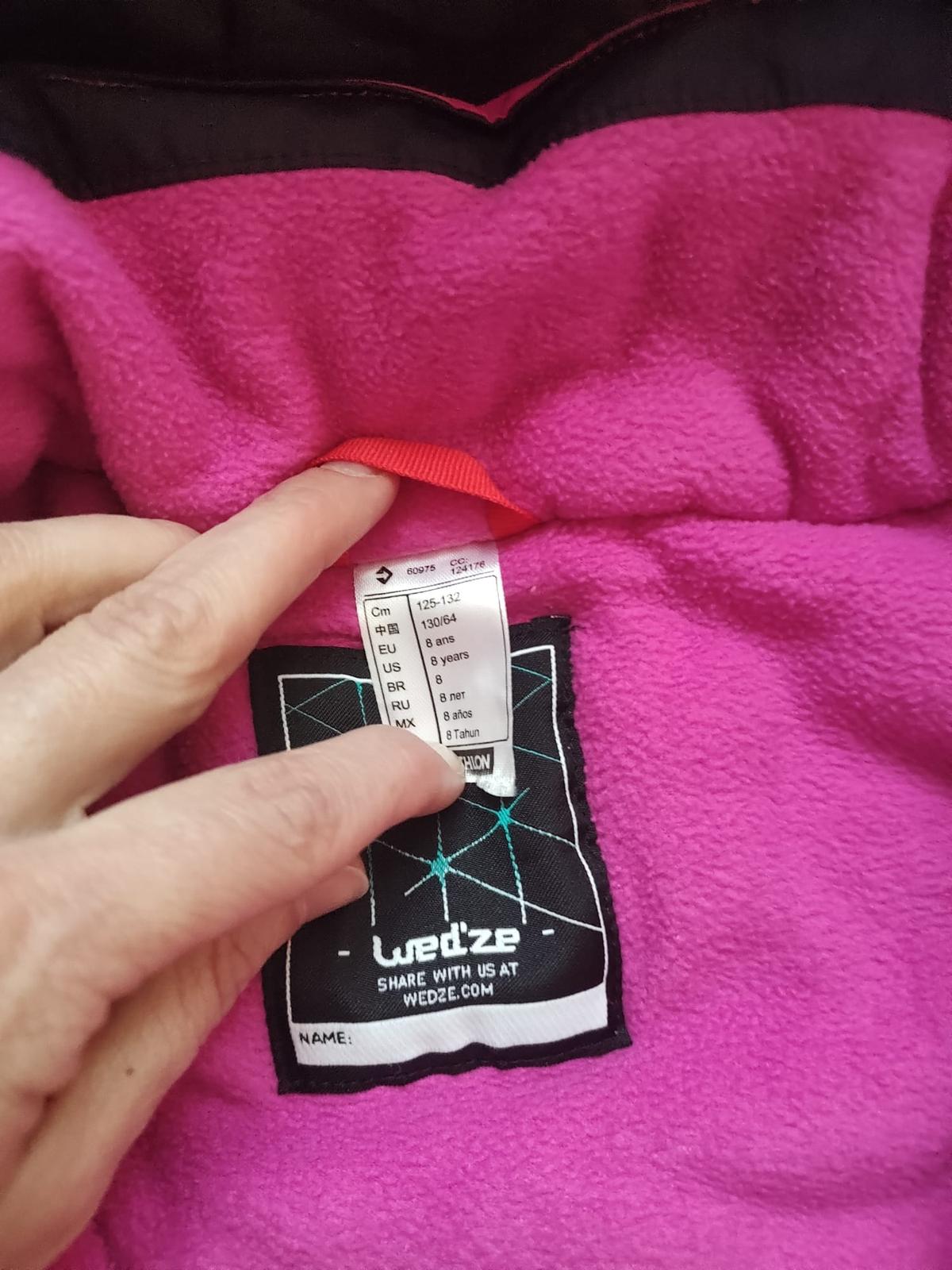 Zimná nepremokavá kombinéza s elastickým pásom. Rukávy sú zakončené elastickou manžetou. Zapínanie na zips a gombíky, šírka sa dá upraviť pomocou gombíkov vnútri obleku. Na prednej strane je vrecko...