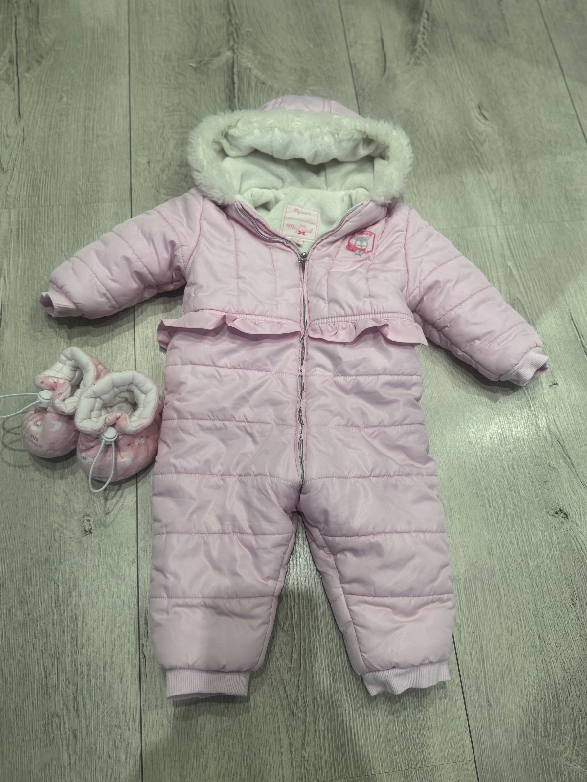 Nádherná zimná kombinéza Mayoral ako nová , veľkosť 9-12 mesiacov , prikladám k tomu teplučké aťahovacie capačky
