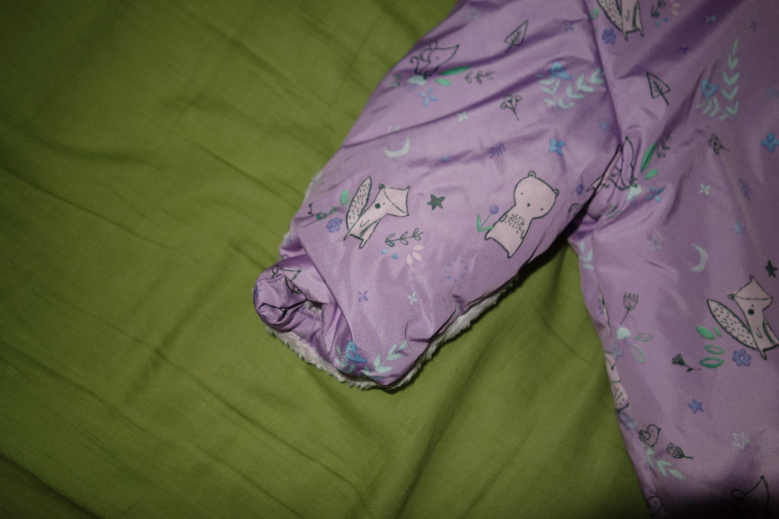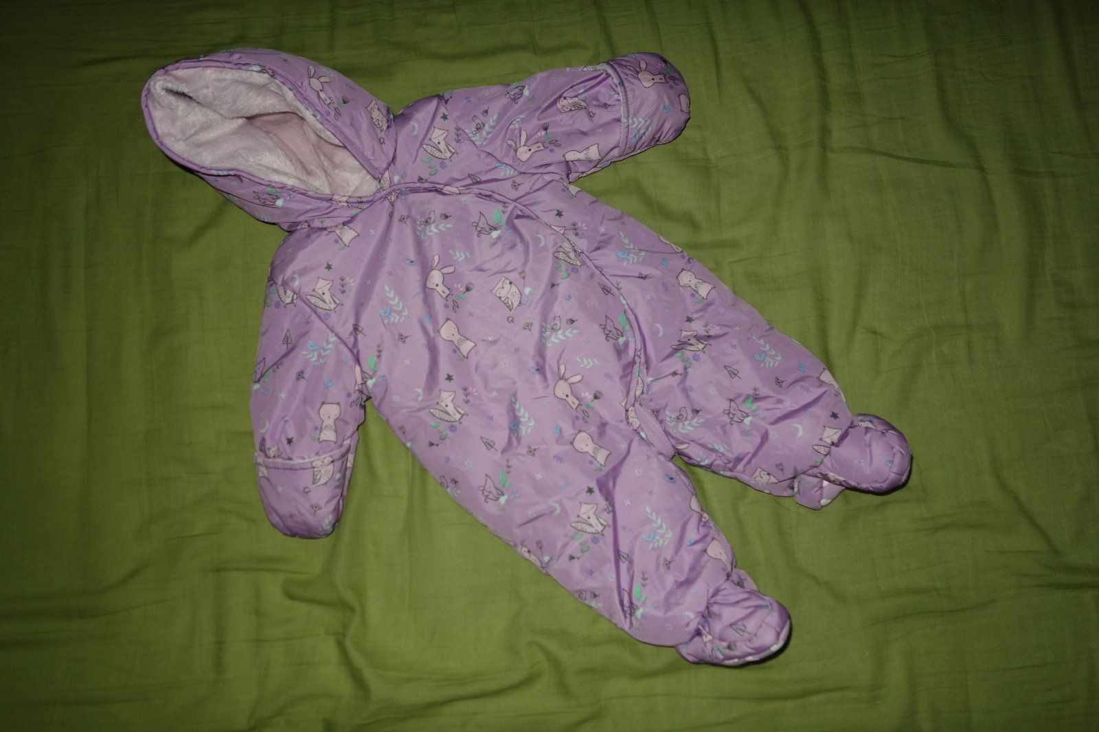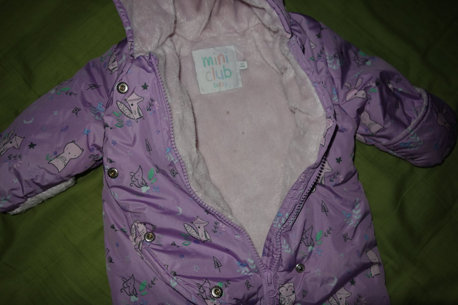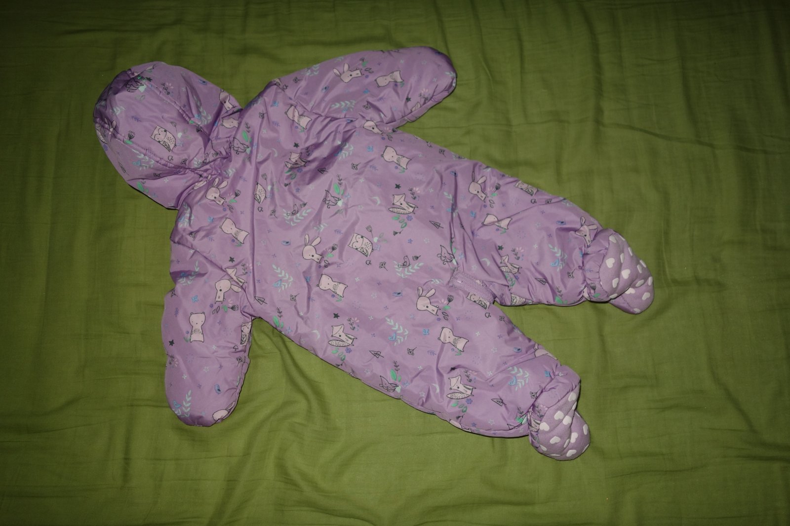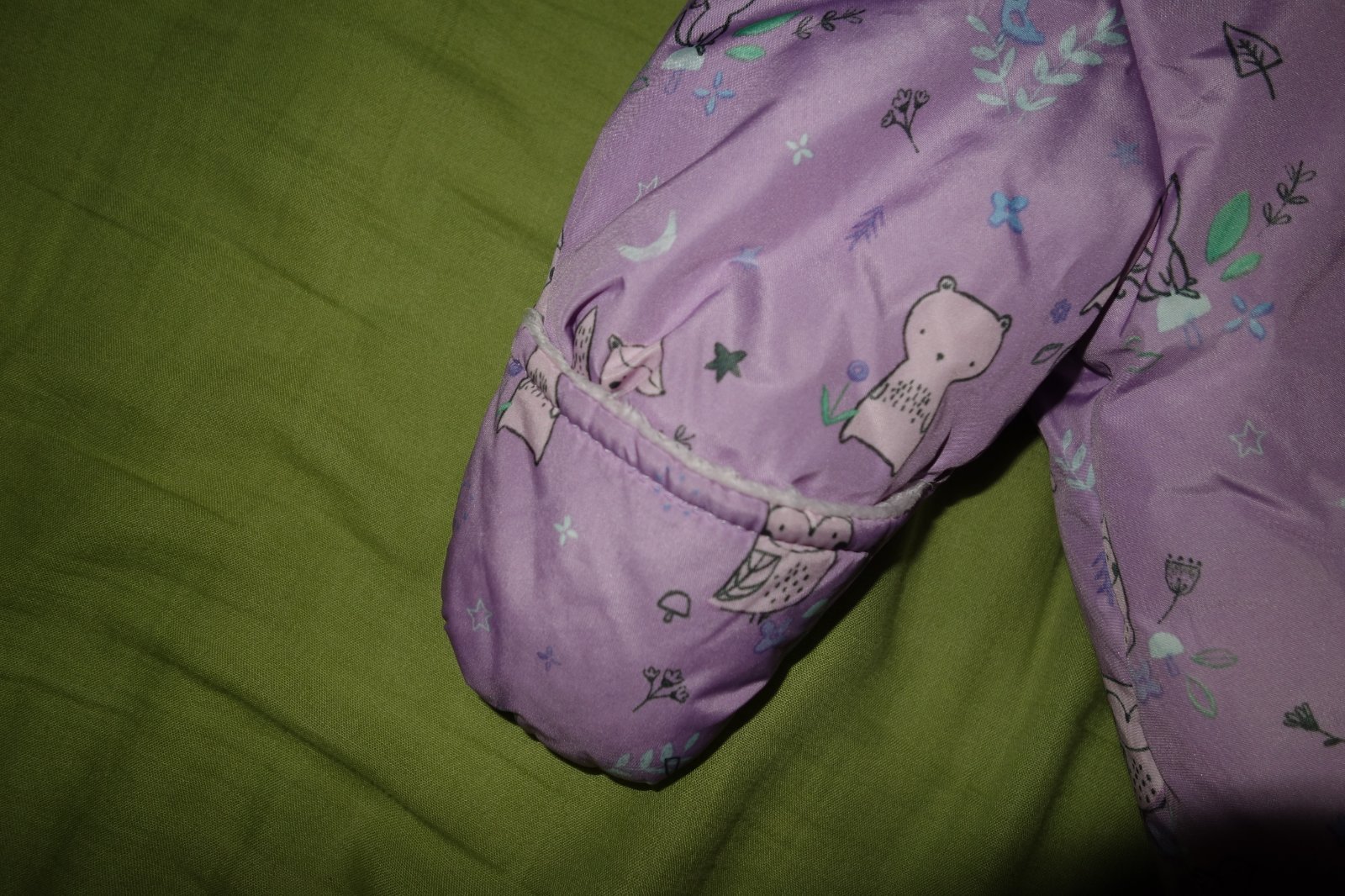 Krasny overalcek vo velmi dobrom stave. Je podsity plysom. Rukaviky sa daju zaklopit, vznikne z toho rukavicka.