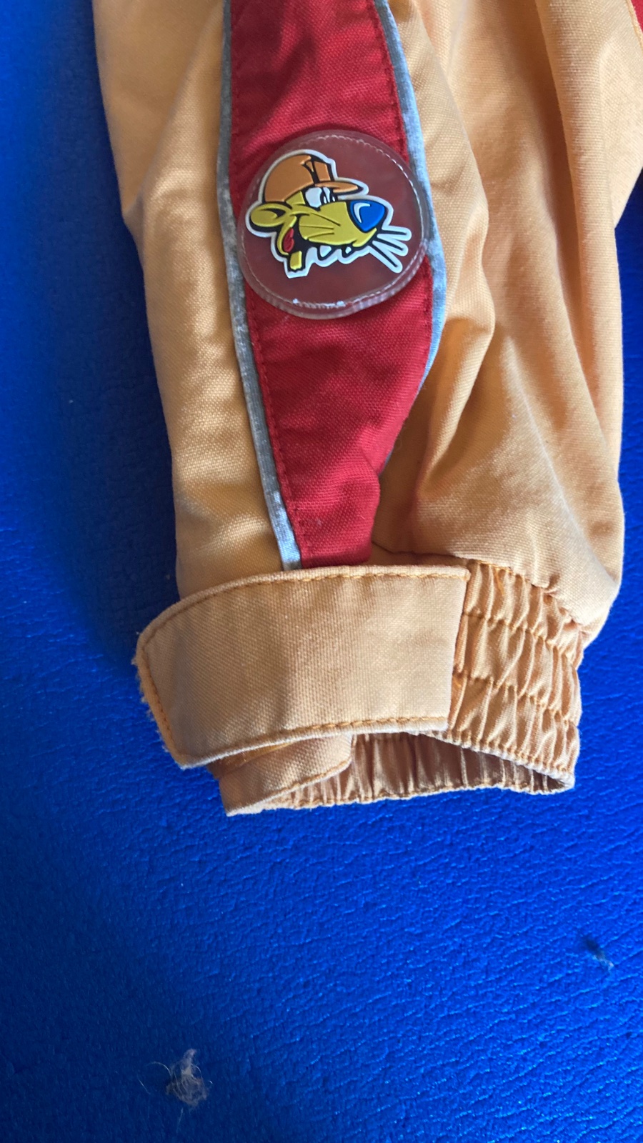 Noseny, nepremokavý overal. Vodeodolnosť 5000mm Medzi nohami dieťa viď foto šikovná maminka zašije, zohľadnené v cene.Je to dvojcislo 98/104 Dĺžka 85 CM Šírka pod pazuchami 35cm Rukáv od krku 42cm...