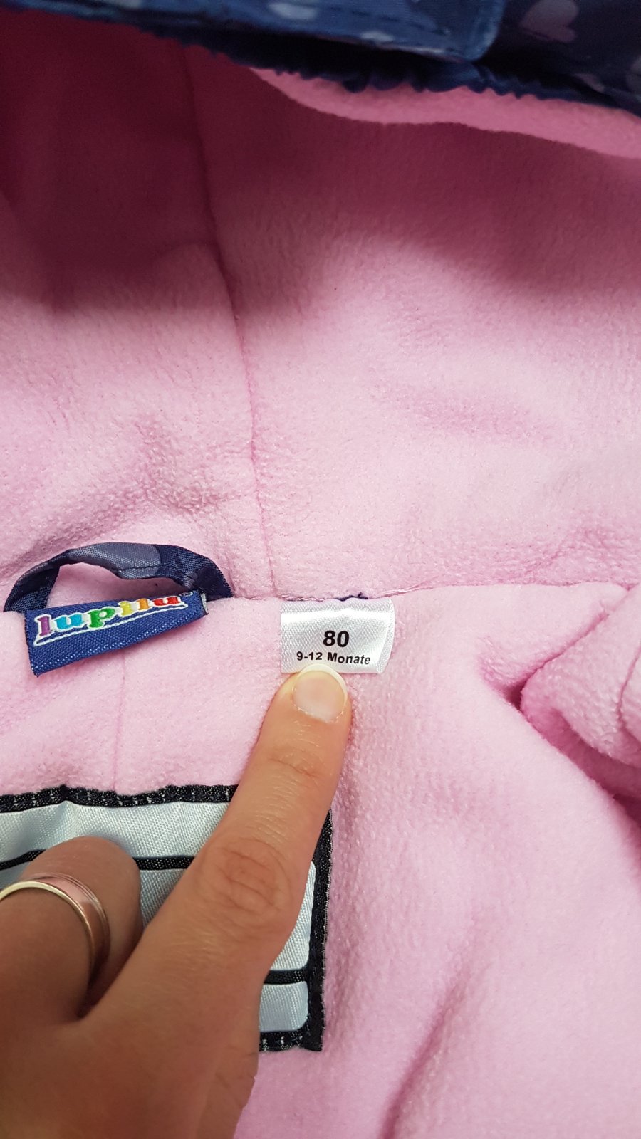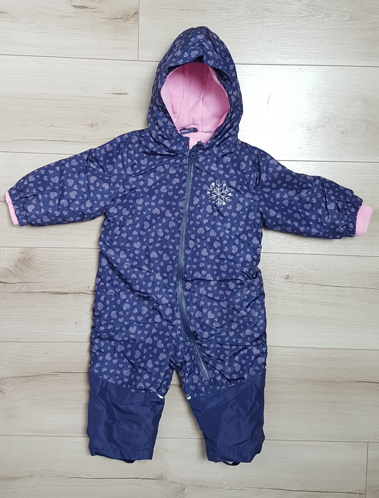 Posuniem zimný overal značky lupilu, veľkosť 9-12 mesiacov. Chybičky viď foto. Gumičky na nohách trochu zatiahnuté, ale držia dobre, malý fľak od soli (neodohrali ho), dierka na gumke na kapucni. C...