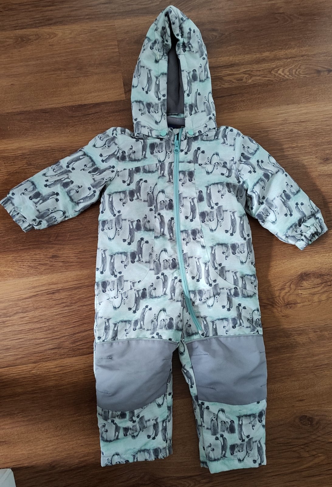 Teplý overal, kombinéza. Ľahké obliekanie vďaka dlhému zipsu až k nožičke, rúčky sa dajú vyhrnúť, alebo schovať vďaka všitym rukavičkám Z vnútornej strany vyteplený, viď foto. Veľkosť 62 s nozickam...
