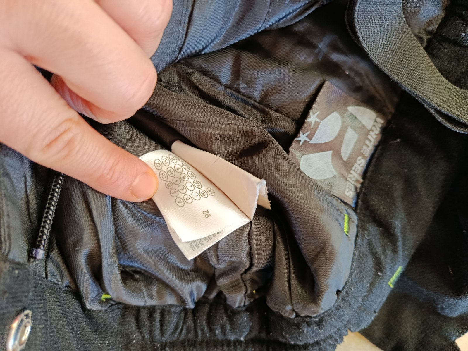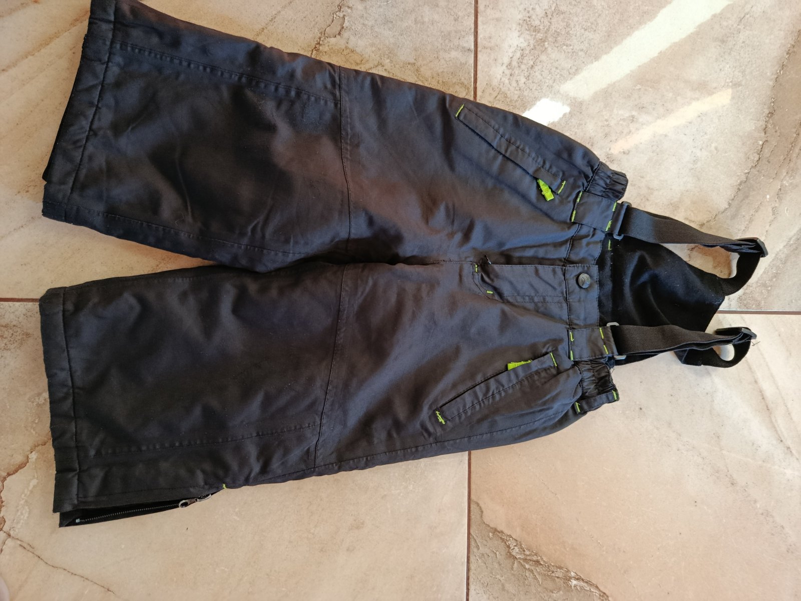 Oteplovačky bez poškodení,majú veľkosť 92. Z vnútornej strany a pri kolenách farba je krikľavo zelená (viď 3. foto). Mám k tomu kabát (veľ:92) v modrej farbe.