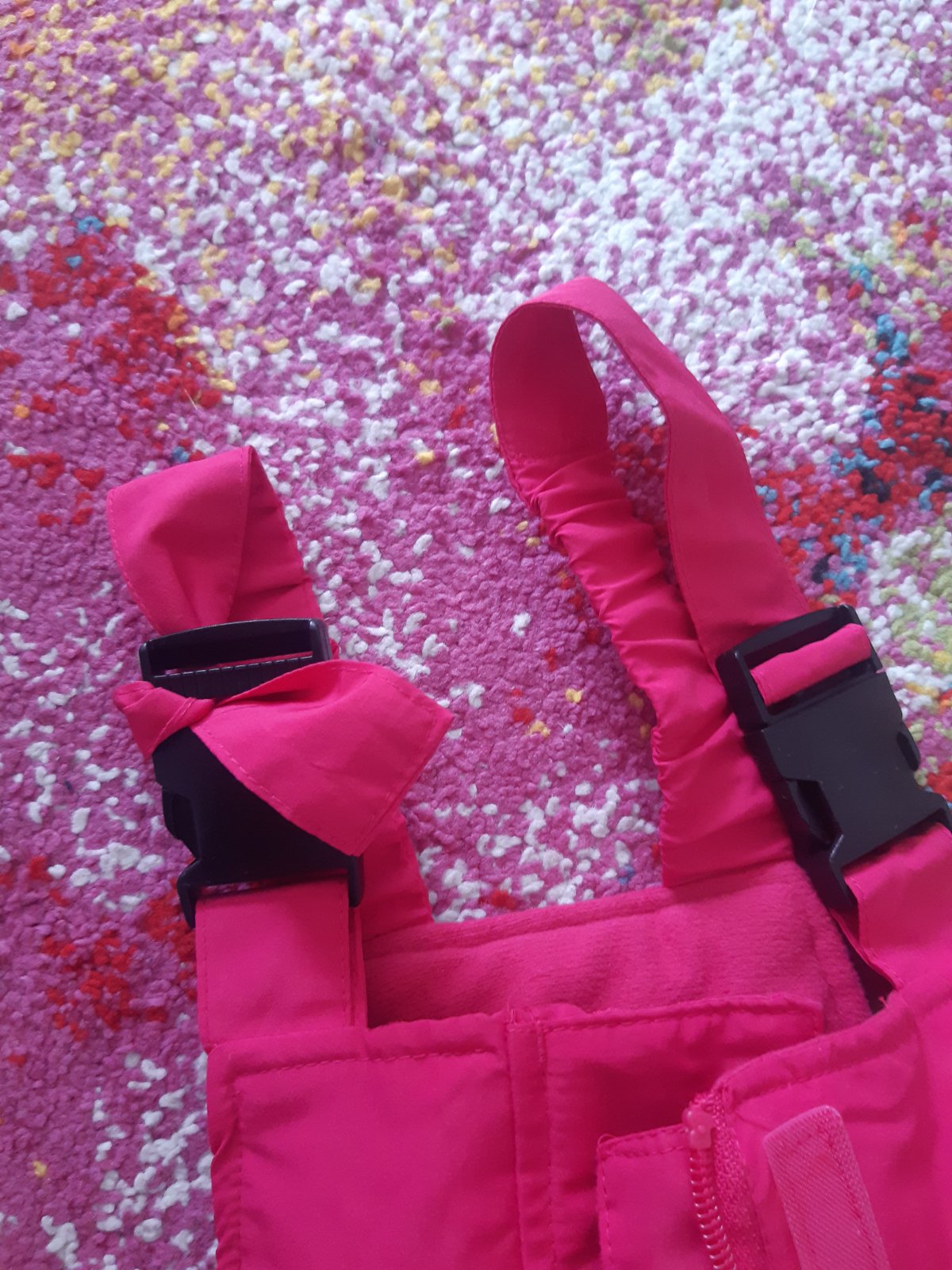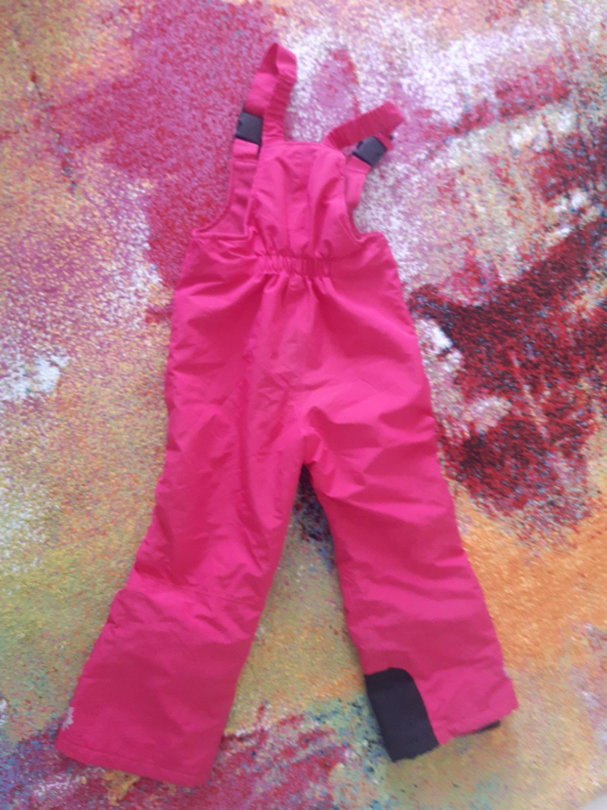 Predám oteplovačky Name it, sú nepoužívané , visačku už som odstránila. Sú kvalitne, nepremokavé, vodný stĺpec je 8000. Farba je krásna cyklamenova. Traky sa dajú dať dole.