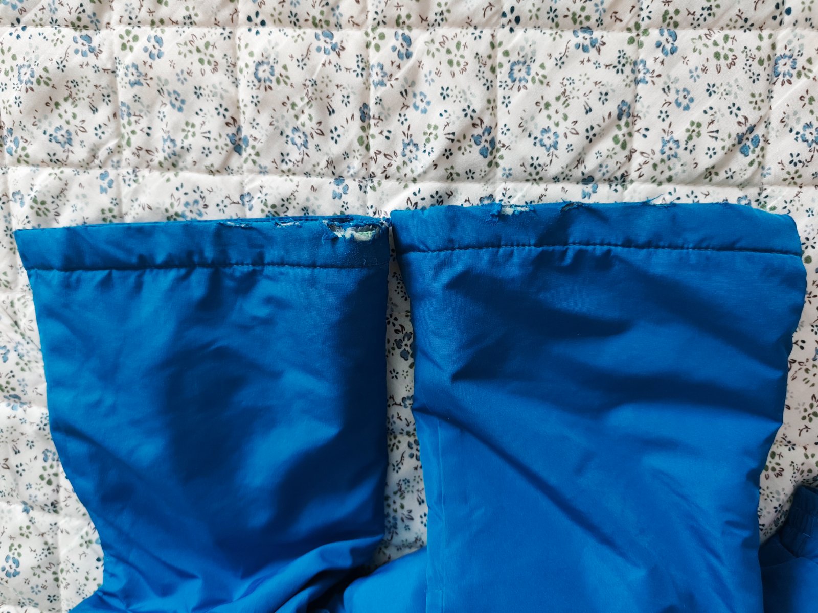Nosená, vyšúchané kolená a trochu zadok. Ale zatiaľ nepremokala. Zlomil sa jeden zub na opasku ale dá sa to zapínať aj tak.