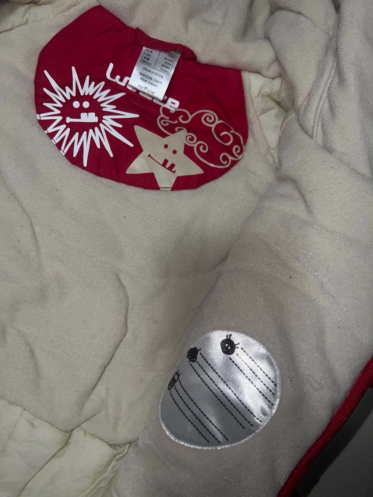 Overal bol prerobený, aby mal voľný otvorený spodok, písaná veľkosť 9-12 m, ale malinká ho nosila, keď mala rok aj 3 m, takže veľkostne skôr 12-15 :) nemá poškodenia, teplucky