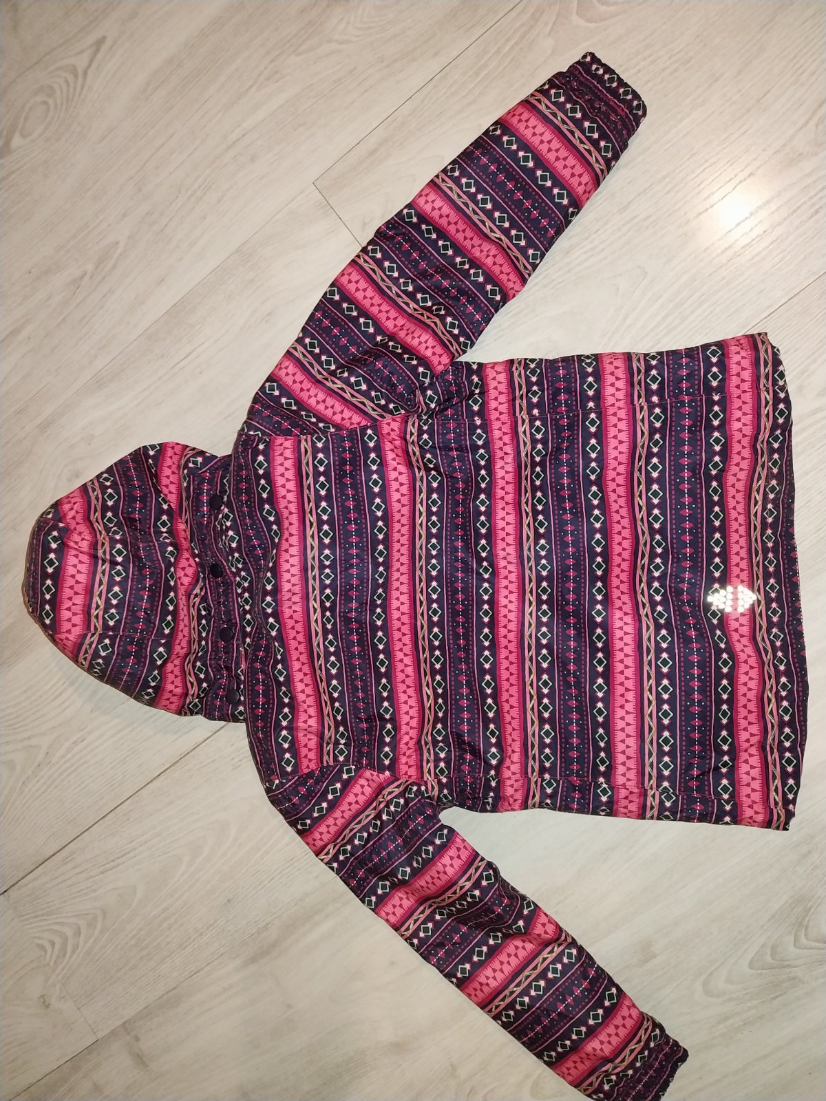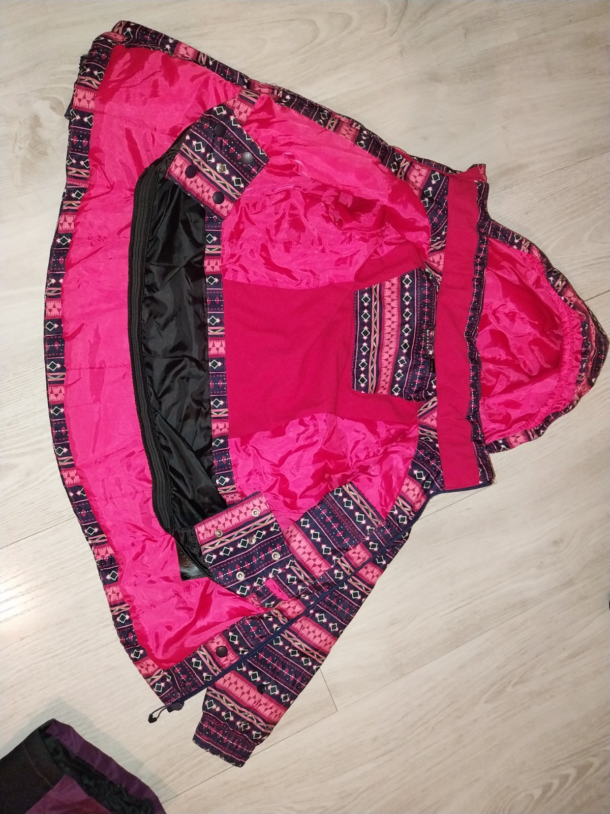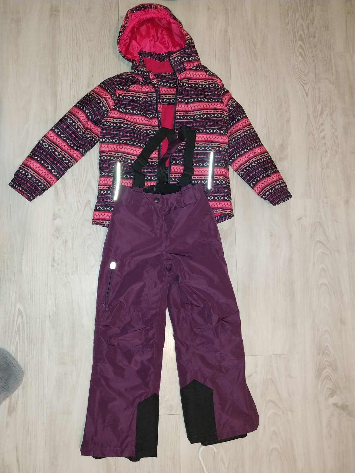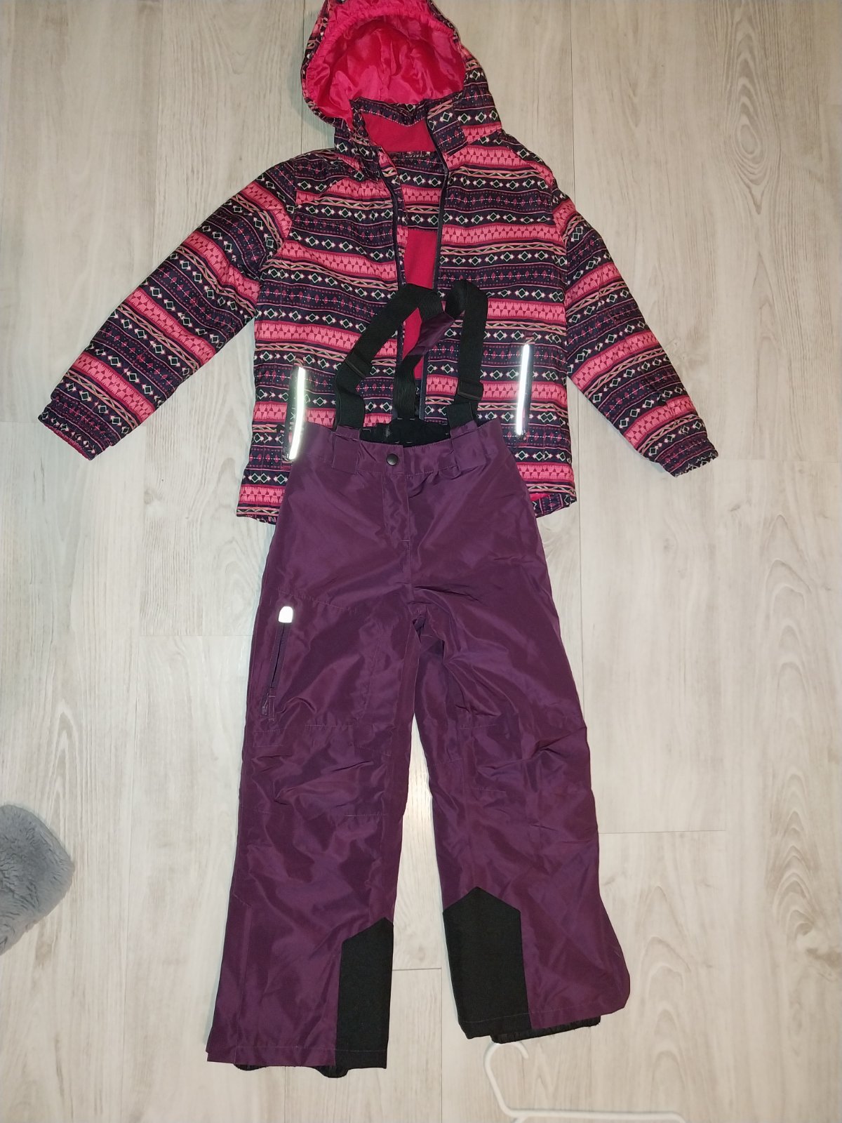 Predám fialovú bundu a čierne otepľovaky vo veľkosti 122/128. Stav pofotený na fotkách. Popraskané gumičky na oteplovakoch, ale drží to. Cena 8,50e.