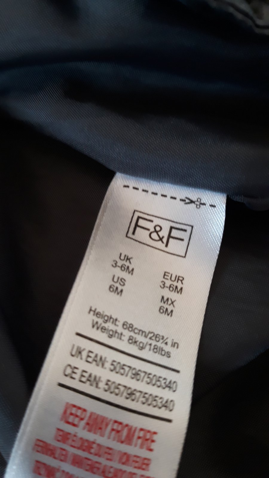 Overal na zimu tmavošedej farby. Značka F&F. Je vo veľmi dobrom stave. Bez poškodenia. Velkosť 68/ 3- 6 m. Zapínanie na dva zipsy. 10e + poštovné.