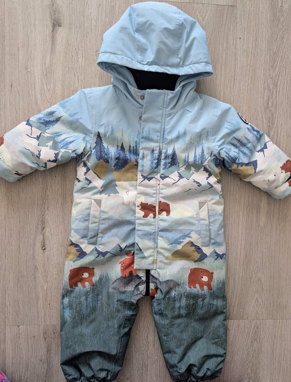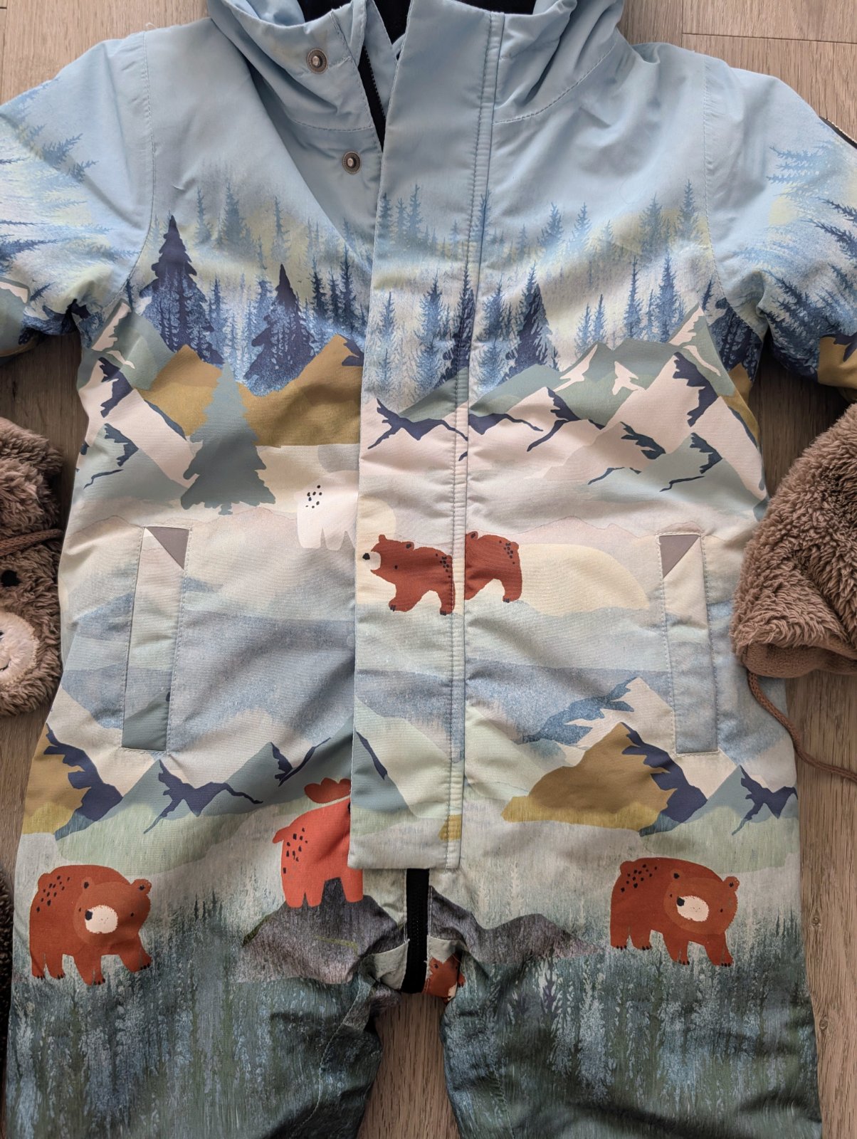 Overal je nepremokavy, teply, v skvelom stave, nevysuchany, farby krasne ziarive ako nove.