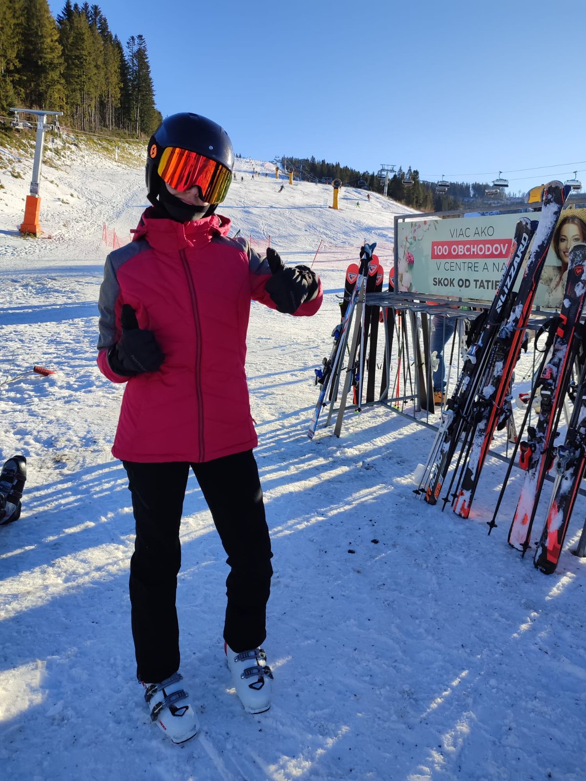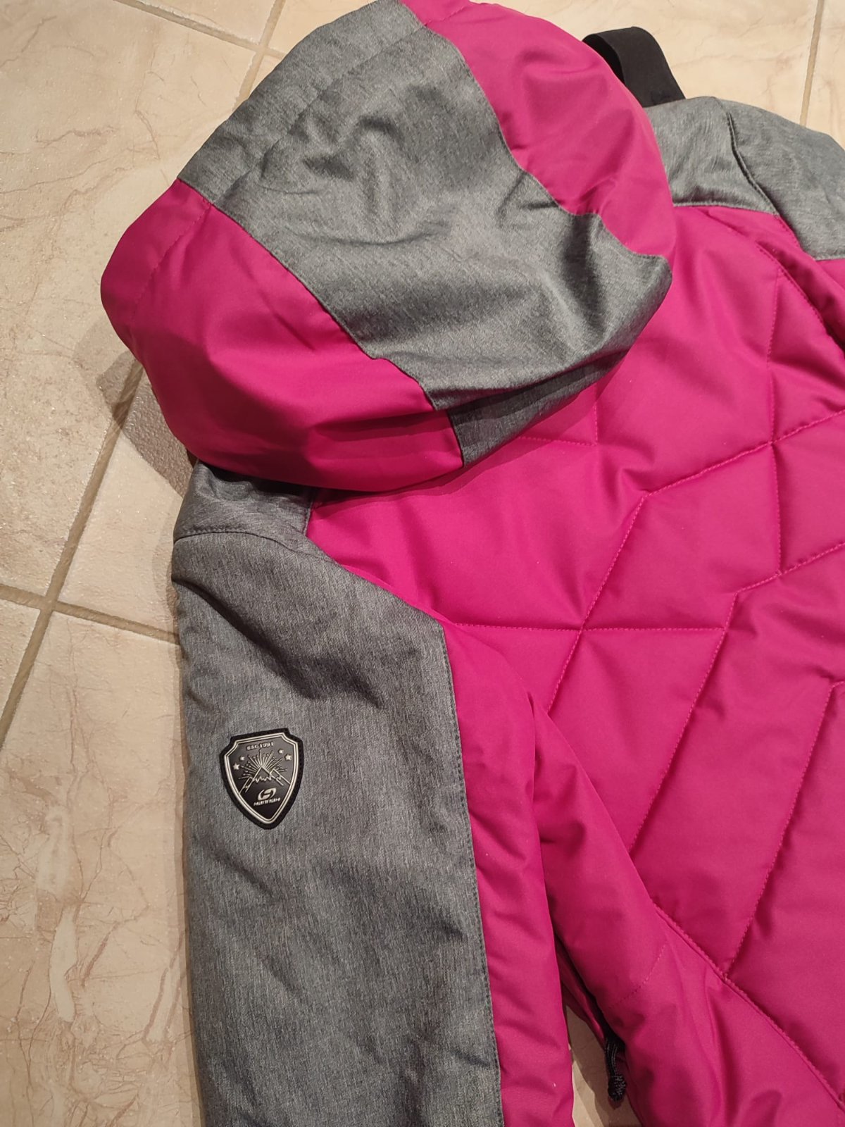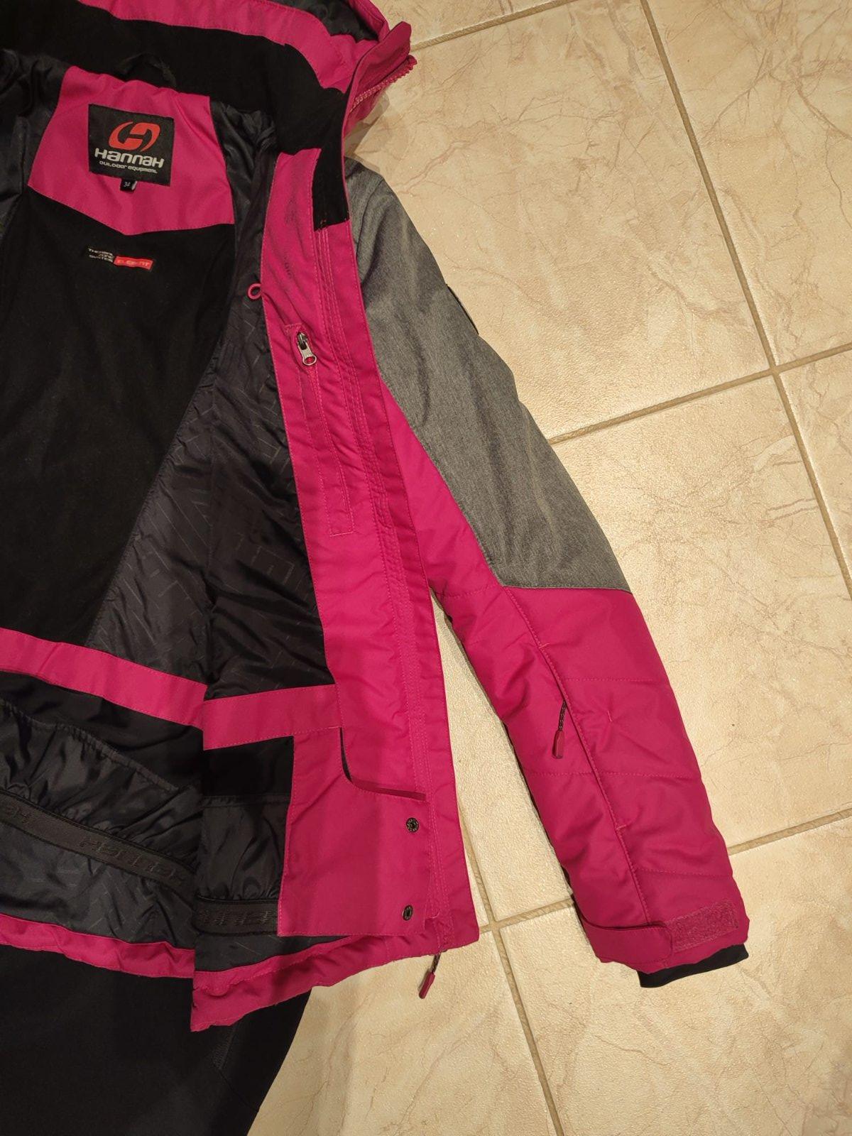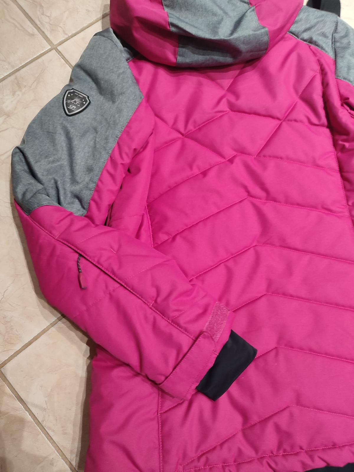 Bunda je krásnej červeno-malinovej farby, má snežný pás, vrecko na skipas, na rukávoch manžety, vnútorné vrecká a odopínaciu kapucňu. Bez akýchkoľvek poškodení.