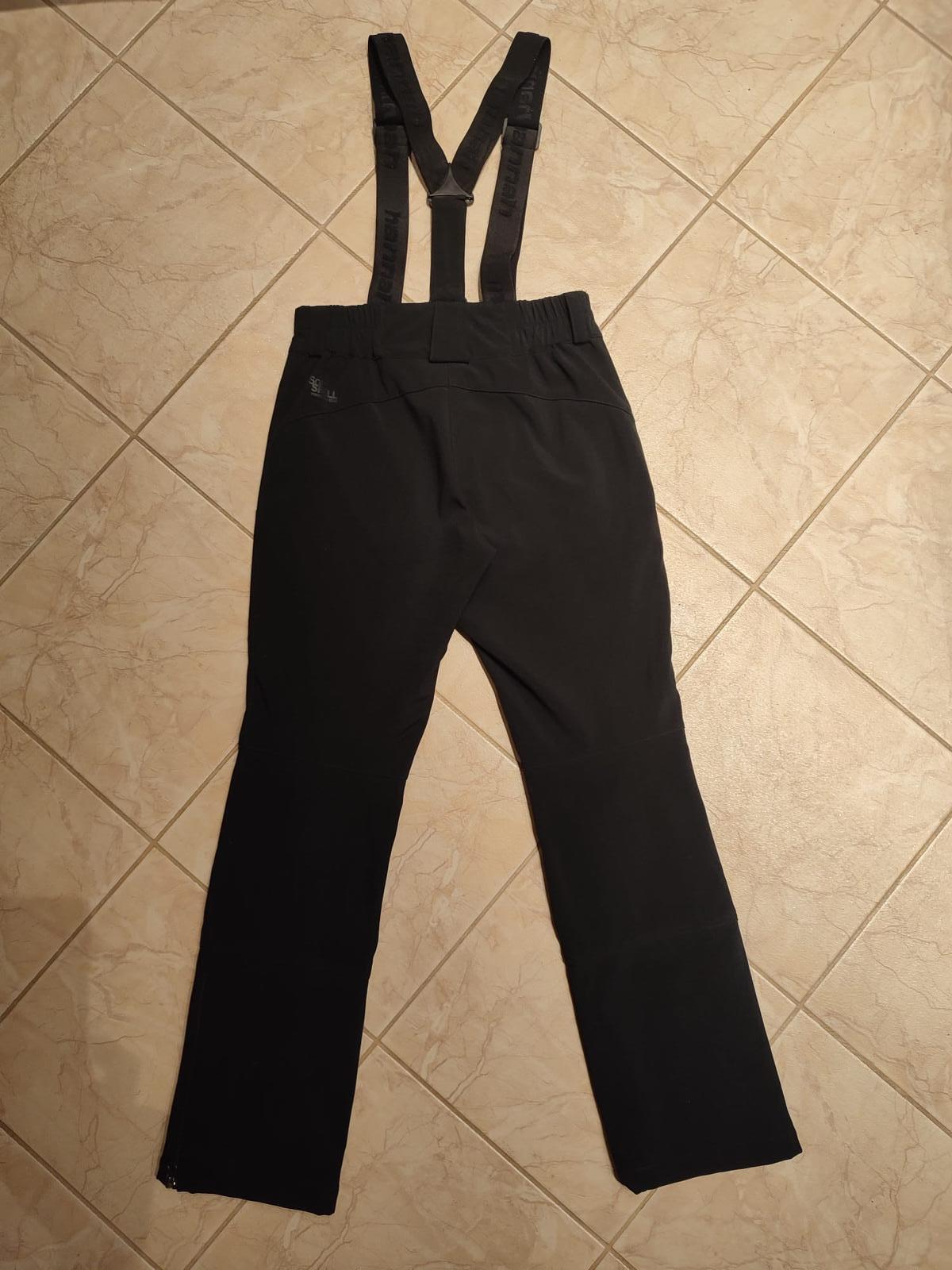 Nohavice sú čierne, softshllový materiál. Majú traky, v páse naviac možnosť nastavenia pomocou suchých zipsov. Dole zipsy pre lepšie navlečenie na lyžiarky.