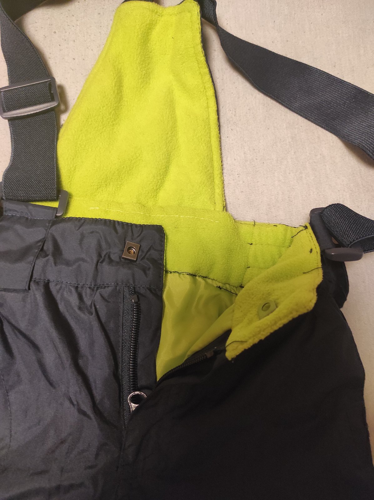 Oteplovačky bez poškodení,majú veľkosť 92. Z vnútornej strany a pri kolenách farba je krikľavo zelená (viď 3. foto).