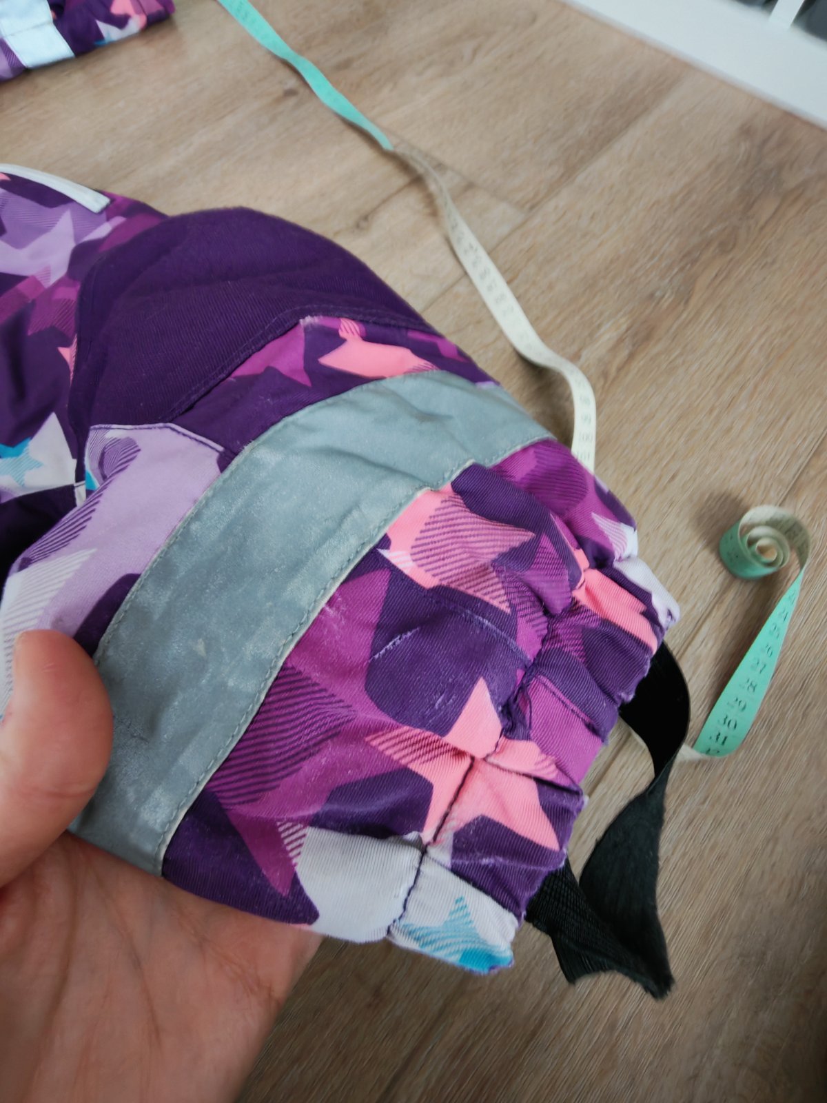 Pri fotení som našla trošku natrhnuté, je to na ľavej nohe dole, bežne to nie je vidno. Viď foto. Celková dĺžka 81cm, pás nastaviteľný z vnútra na gumičku a gombík, rukáv od krku 39cm