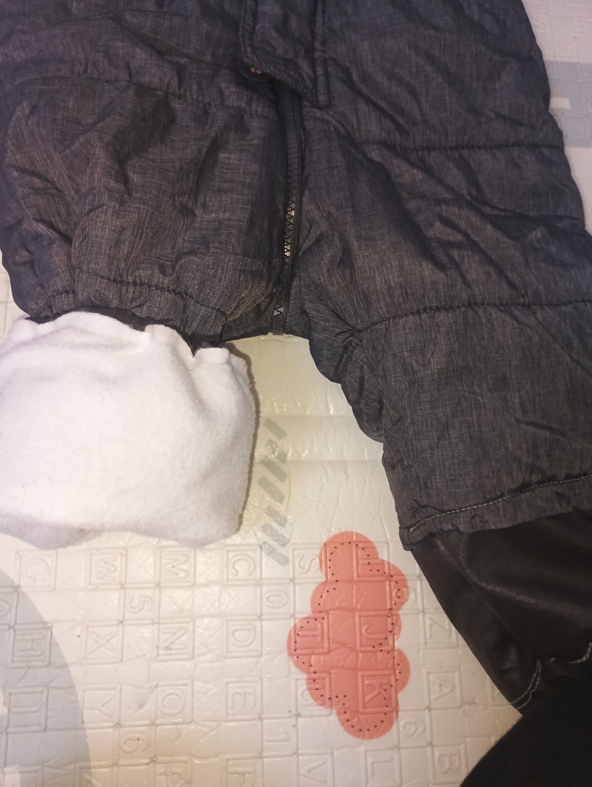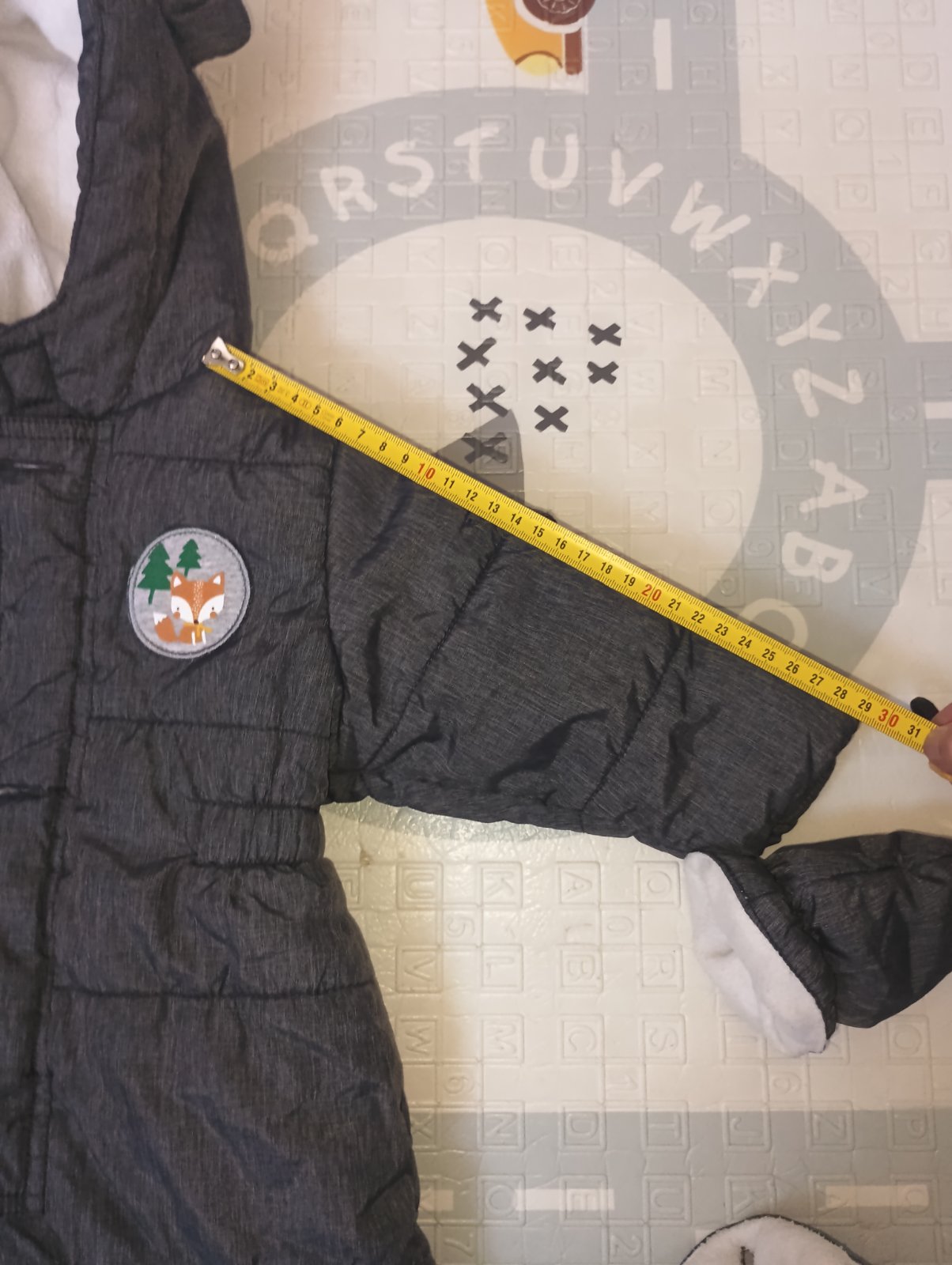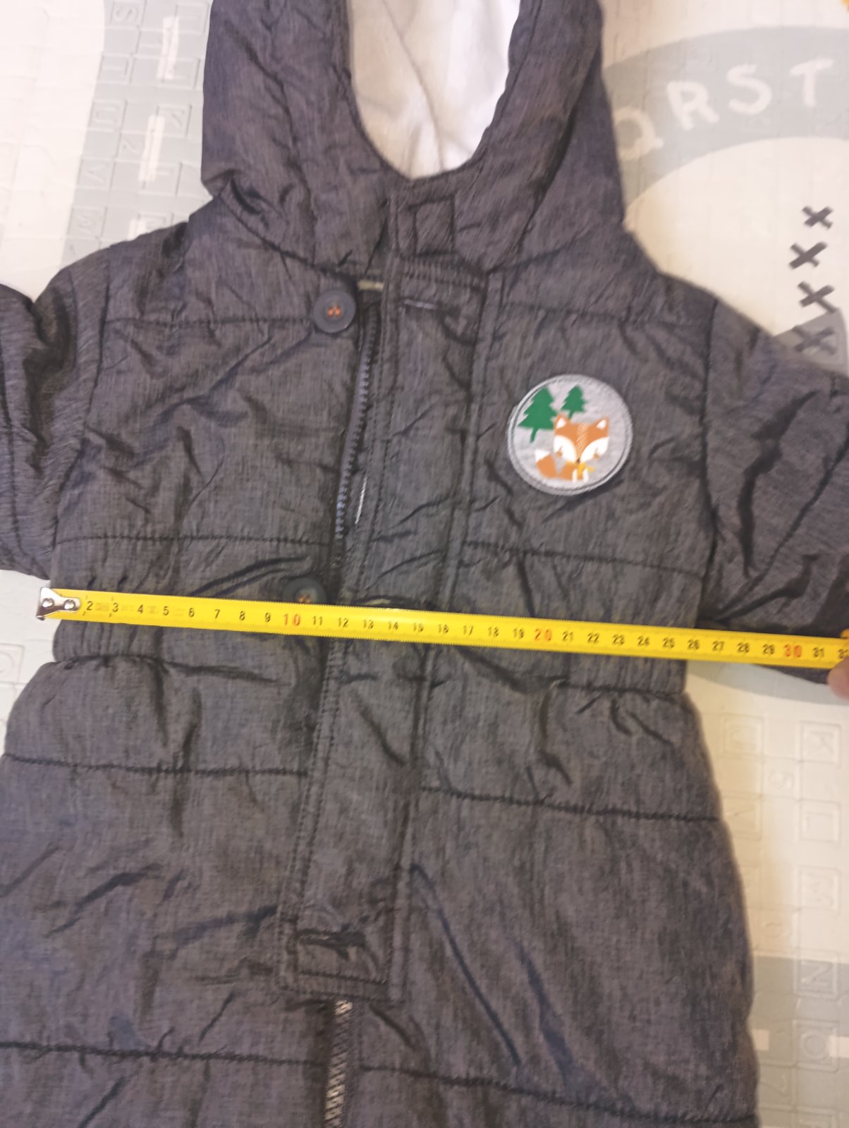 Málinko noseny overal, bez poškodení. Akurát má dosite zateplené predĺženie na nožičkách čiže návleky na nožičky už sa nedajú pripevniť gombíkom. Miery na fotkach