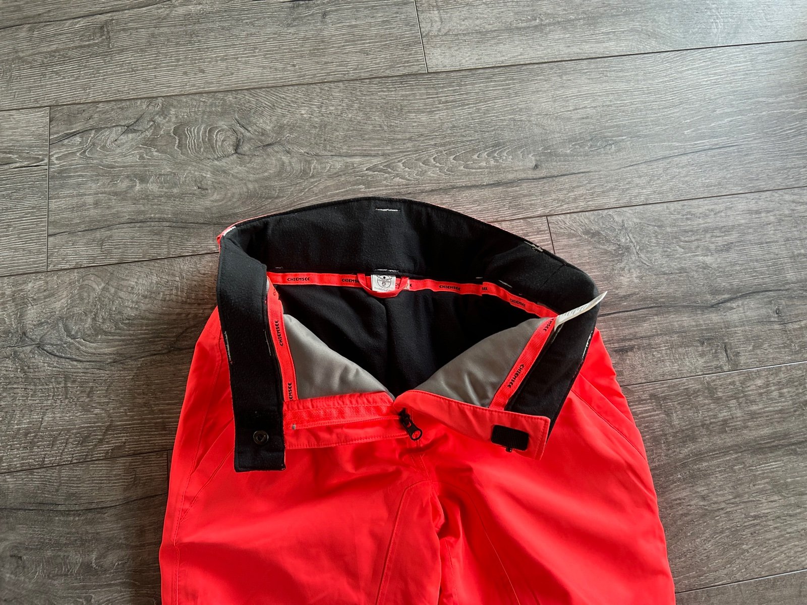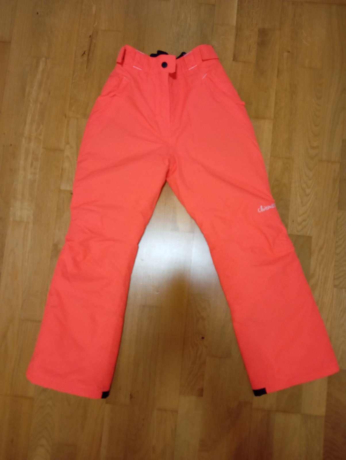 Krásne otepľovačky so žiarivou neonovou farbou. Vodeodolné, vetruvzdorné, zateplené. Majú regulovateľný pás, vrecká na zips, snehovú zábranu na nohách. Je to síce č. 152, ale sú menšie.